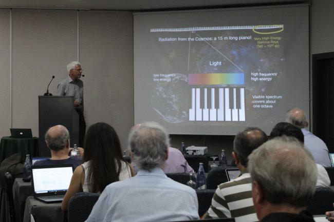 Werner Hofmann in his talk "CTA in the context of gamma ray astronomy". Credit: Alejandra Rueda (IAC).