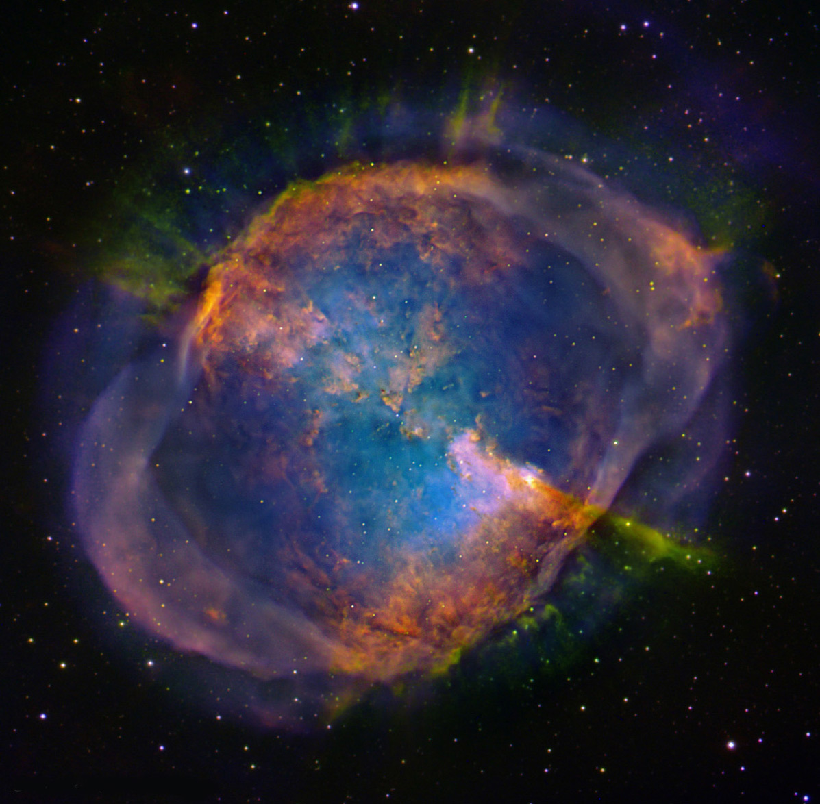 La Nebulosa Dumbbell, o M27, fue descubierta en 1764 por Charles Messier, quien la describió simplemente como una nebulosa con forma oval sin estrellas. Este objeto tiene la peculiaridad de que fue la primera nebulosa planetaria en ser descubierta, siendo además una de las más impresionantes de todo el cielo. El nombre de Dumbbell proviene de la forma que presenta a través de un telescopio, que recuerda a una pesa o mancuerna.