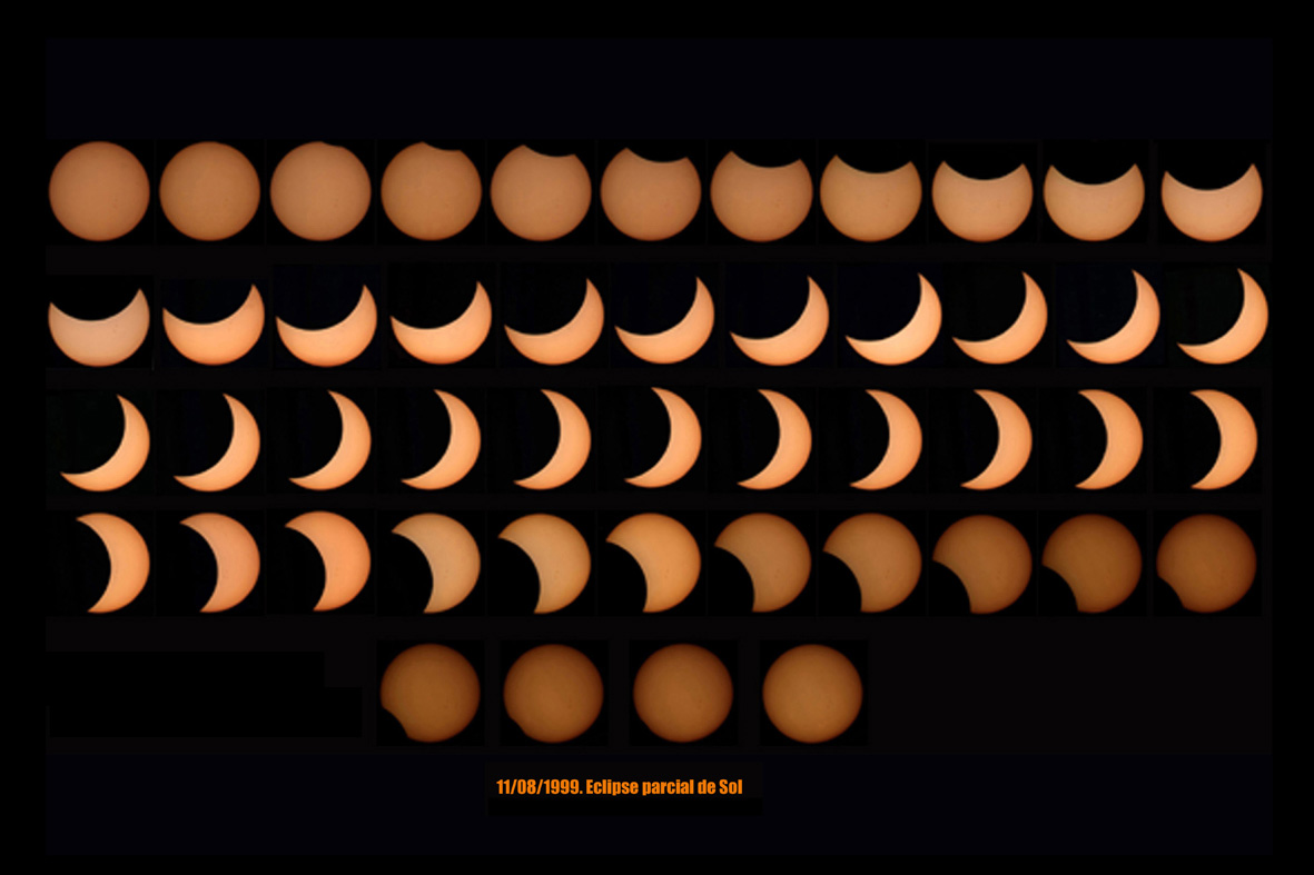 Sequence of images of 1999?s partial solar eclipse.