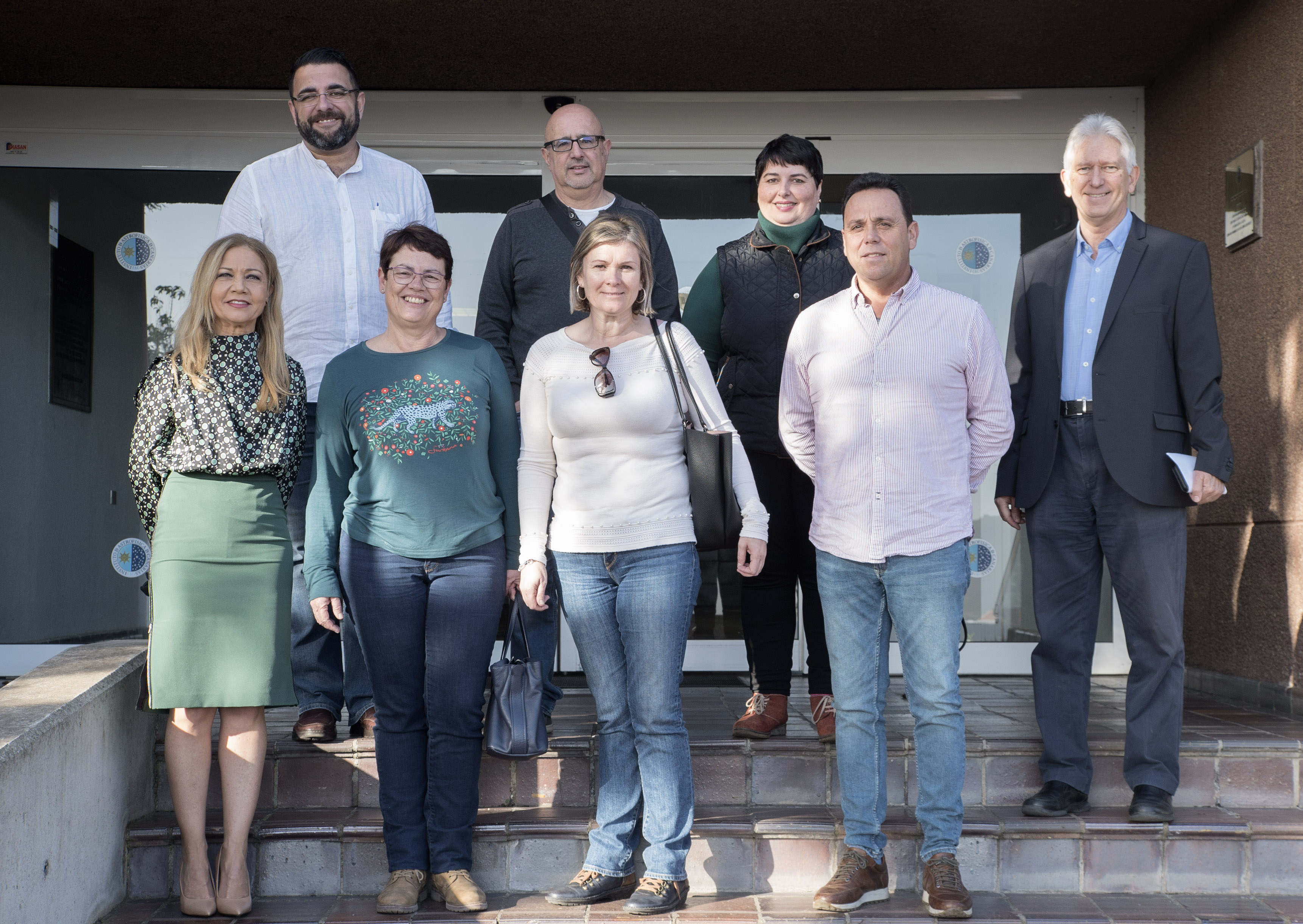 (De izquierda a derecha) Antonia María Varela, Antonio López González, Ana Rosa Mena, Ricardo Chico Marrero, Candelaria de la Rosa González, Eladia Mª López Lutzardo, Julián Rodríguez Pérez y Campbell Warden. Crédito: Inés Bonet (IAC)