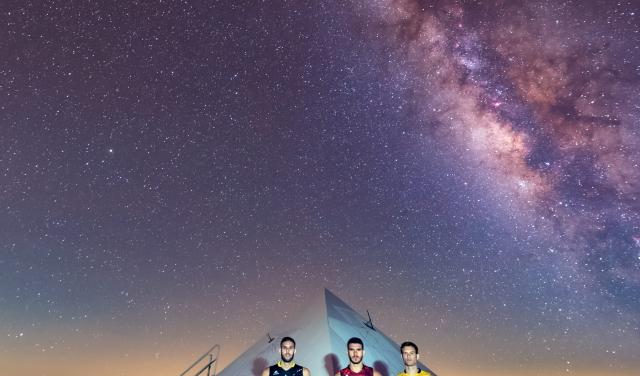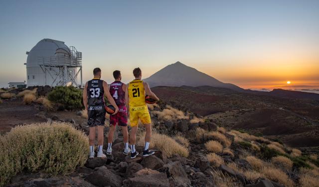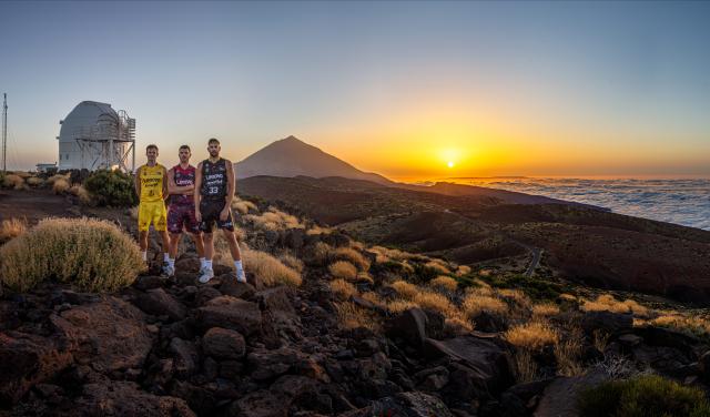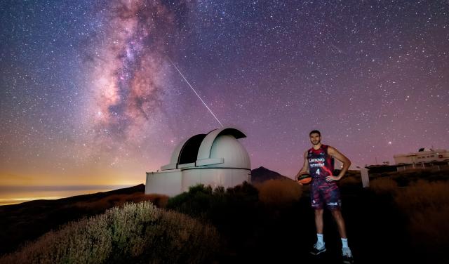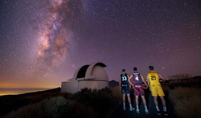Sergio Rodríguez con la nueva equipación inspirada en el cielo de Canarias en el Observatorio del Teide. Créditos: D. López / IAC View media