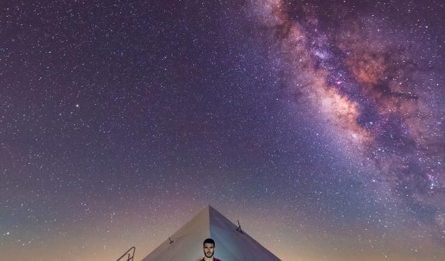 Sergio Rodríguez con la nuevas equipación inspirada en el cielo de Canarias en el Observatorio del Teide. Créditos: D. López / IAC View media