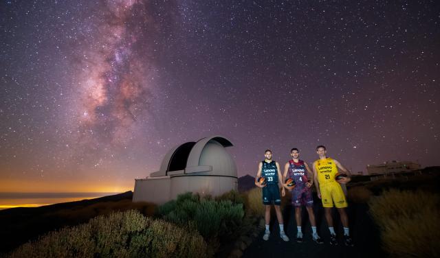 Los jugadores del Lenovo Tenerife con las nuevas equipaciones inspiradas en el cielo de Canarias View media