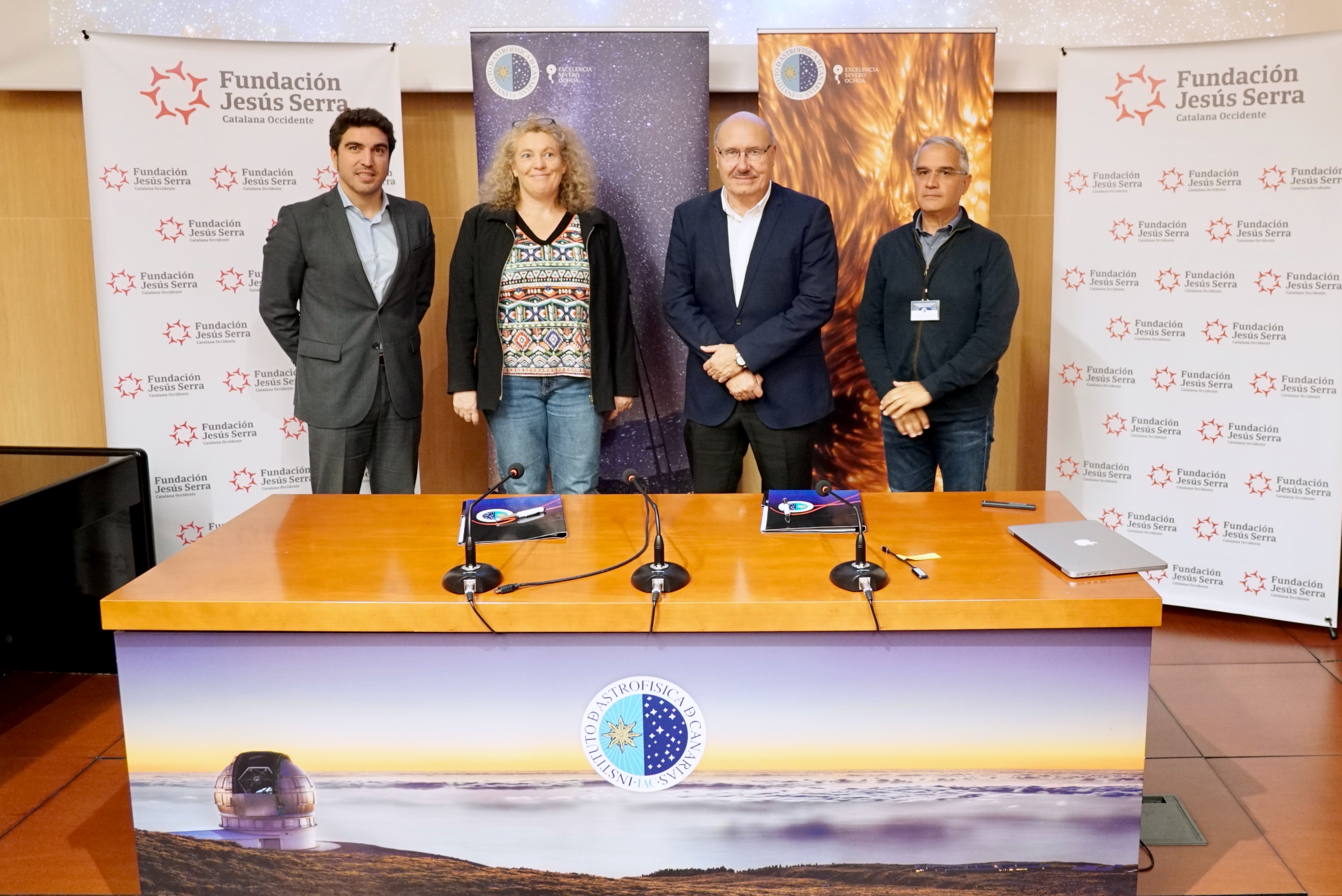 FJS visit to the IAC Download Ignacio Gallardo-Bravo, Director General of the Jesús Serra Foundation, Vanessa Hill, Director of Research at the CNRS, Rafael Rebolo, Director of the IAC, and Santi Cassisi, researcher at the INAF. Created at 12/02/2022 Authors Iván Jiménez Montalvo Instituto de Astrofísica de Canarias (IAC) Credits Instituto de Astrofísica de Canarias (IAC) Obtained at Headquarters Category Events and activities Agreements