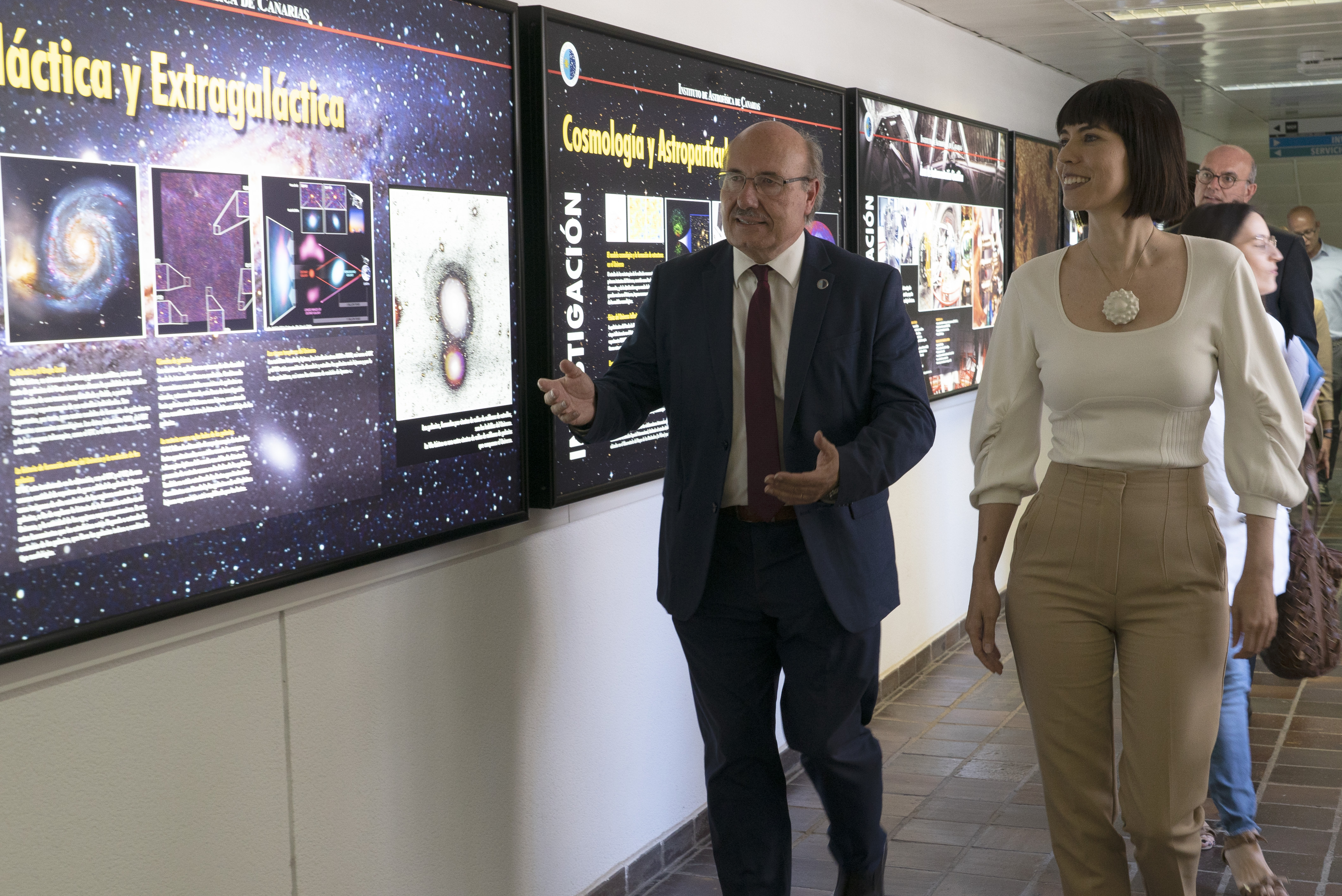 Rafael Rebolo, Director of the IAC, shows the IAC's research areas to Diana Morant, Minister of Science and Innovation, during her visit to the IAC headquarters. Credit: Inés Bonet (IAC).