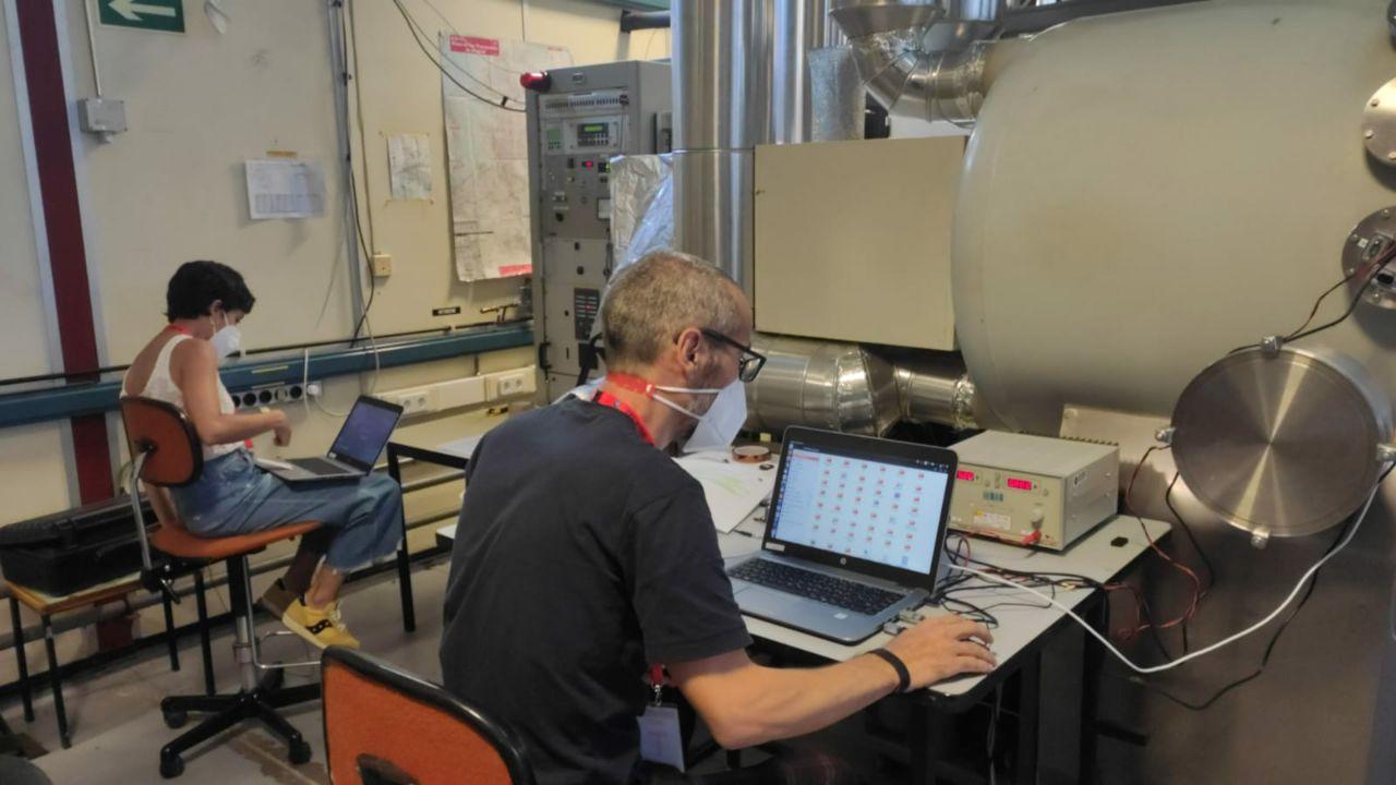 Imagen de José Carlos Sanluis y Alba Peláez, ingenieros de IACTEC, durante los ensayos de termo-vacío para la calificación del instrumento DRAGO