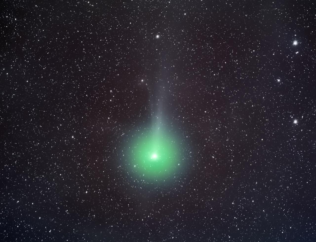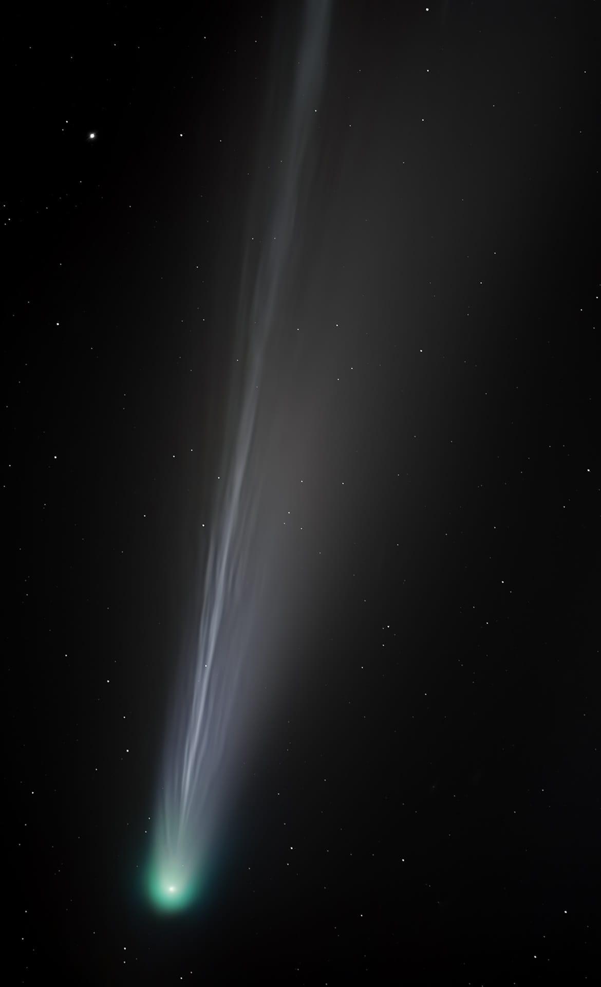 Foto 15: Cometa C/2025 A6 (Lemmon) tomada el 20 de octubre de 2025 desde el Observatorio del Teide con una cámara Canon 6D a ISO 1600 y un objetivo de 135 mm a f1.8 con seguimiento estelar. Se trata de 57 imágenes de 15 segundos, una integración total de 14.25 minutos. Daniel López / IAC.