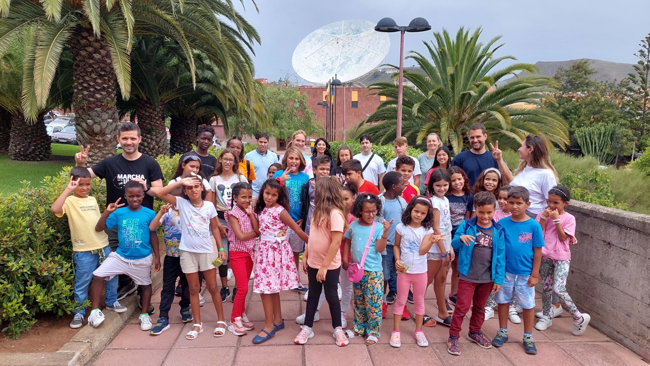 Niñas y niños saharauis del programa “Vacaciones en Paz 2022” y sus familias de acogida disfrutan de las actividades de divulgación astronómica del programa AMANAR y visitan la sede central del IAC en Tenerife.