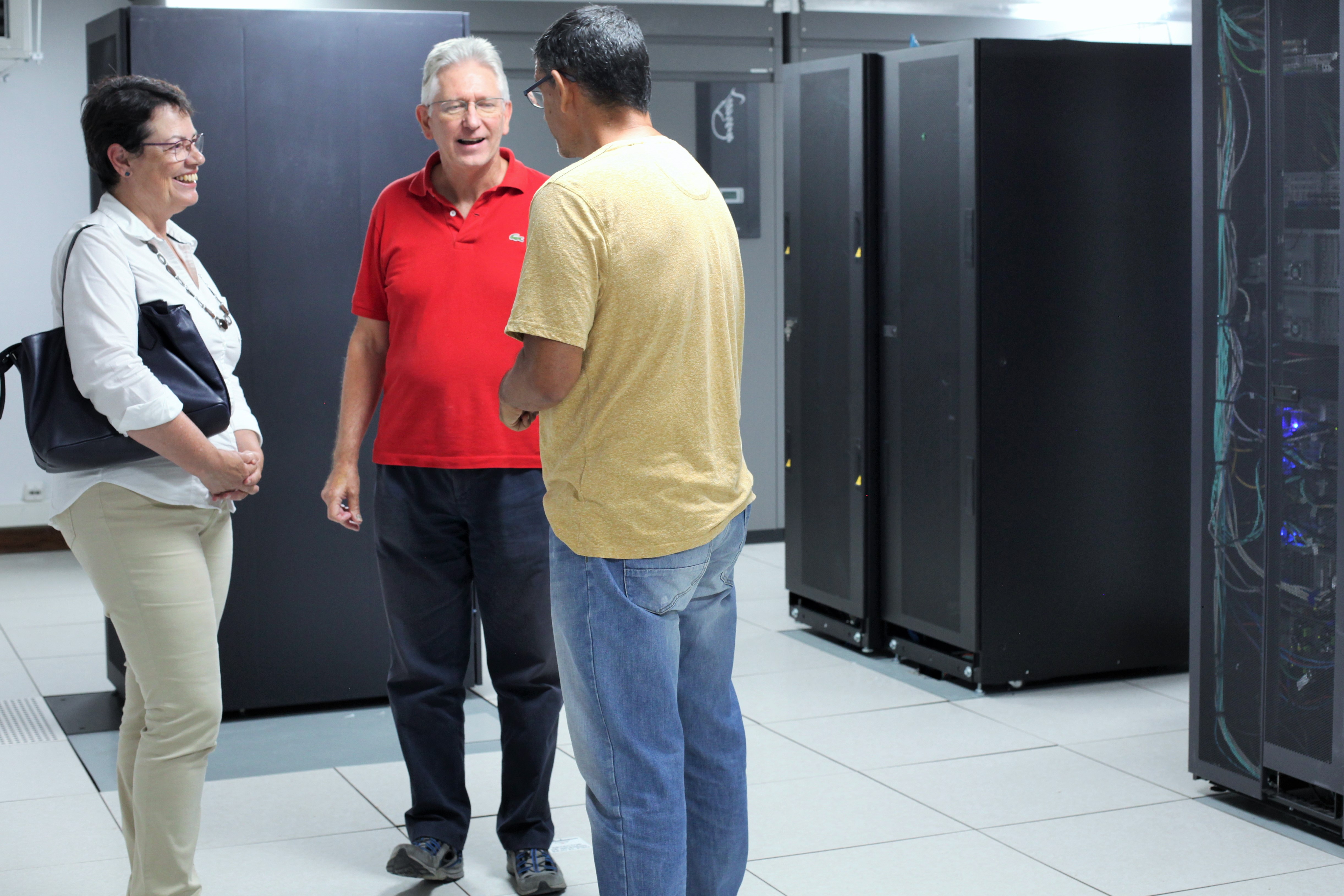 Ana Rosa Mena, Robert Campbell y Antonio Díaz Chinea en el centro del cálculo del IAC, en La Laguna. Crédito: Alejandra Rueda (IAC)