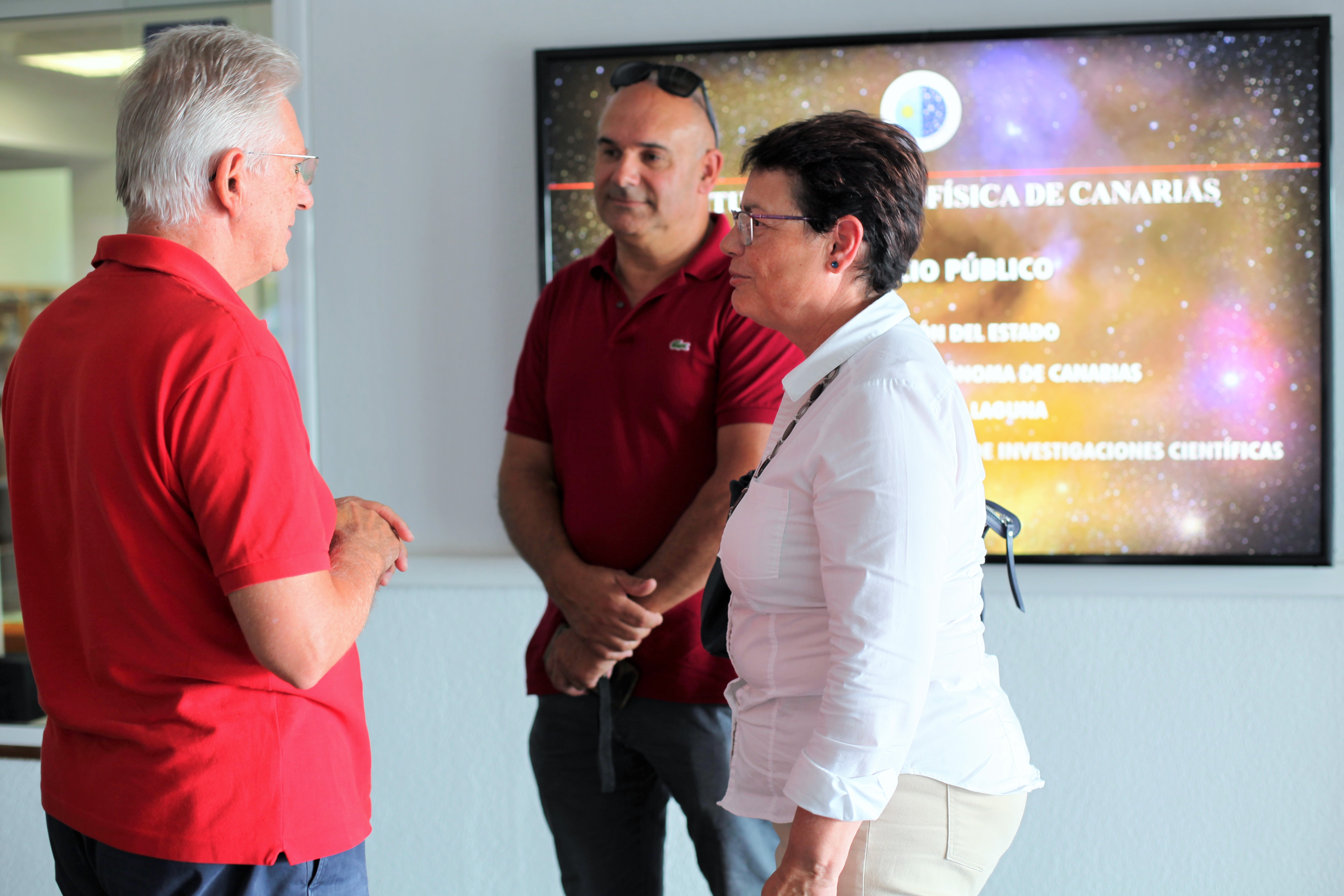Ana Rosa Mena, alcaldesa de Tegueste, y Campbell Warden, secretario ejecutivo del IAC, en la sede central del IAC, en La Laguna. Crédito: Alejandra Rueda (IAC)