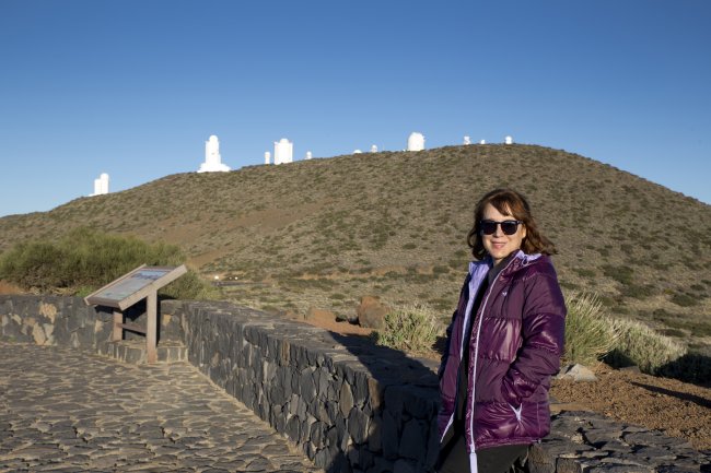 La escritora Ángela Vallvey en su visita al Observatorio del Teide (Tenerife). Crédito: Elena Mora (IAC).