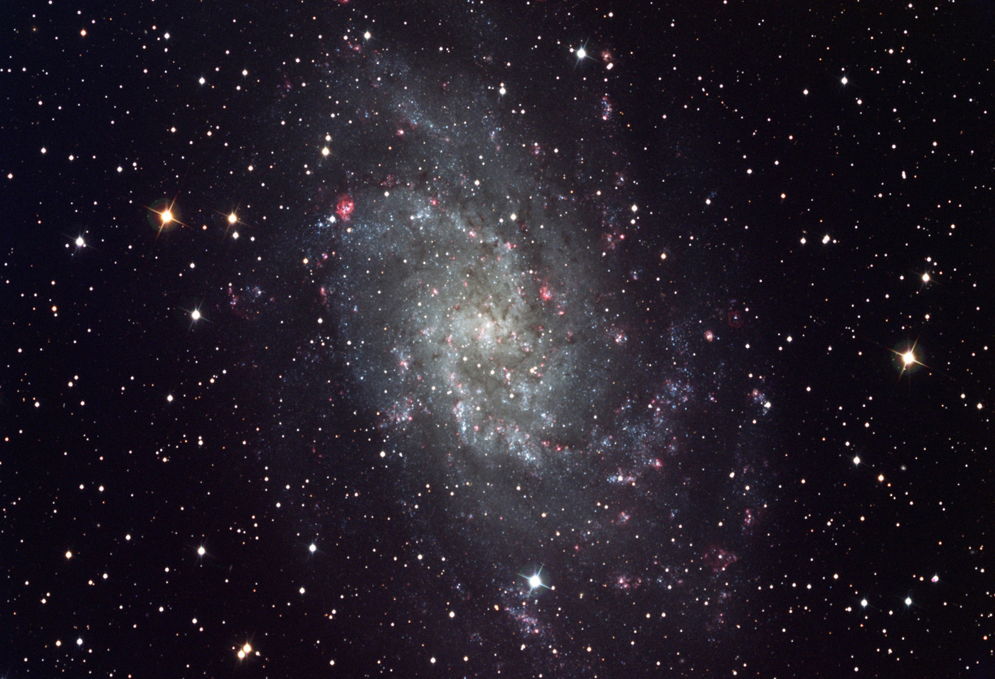 M33 (NGC598) es una galaxia espiral situada a unos 3 millones de años luz de La Tierra, en la constelación del Triángulo.