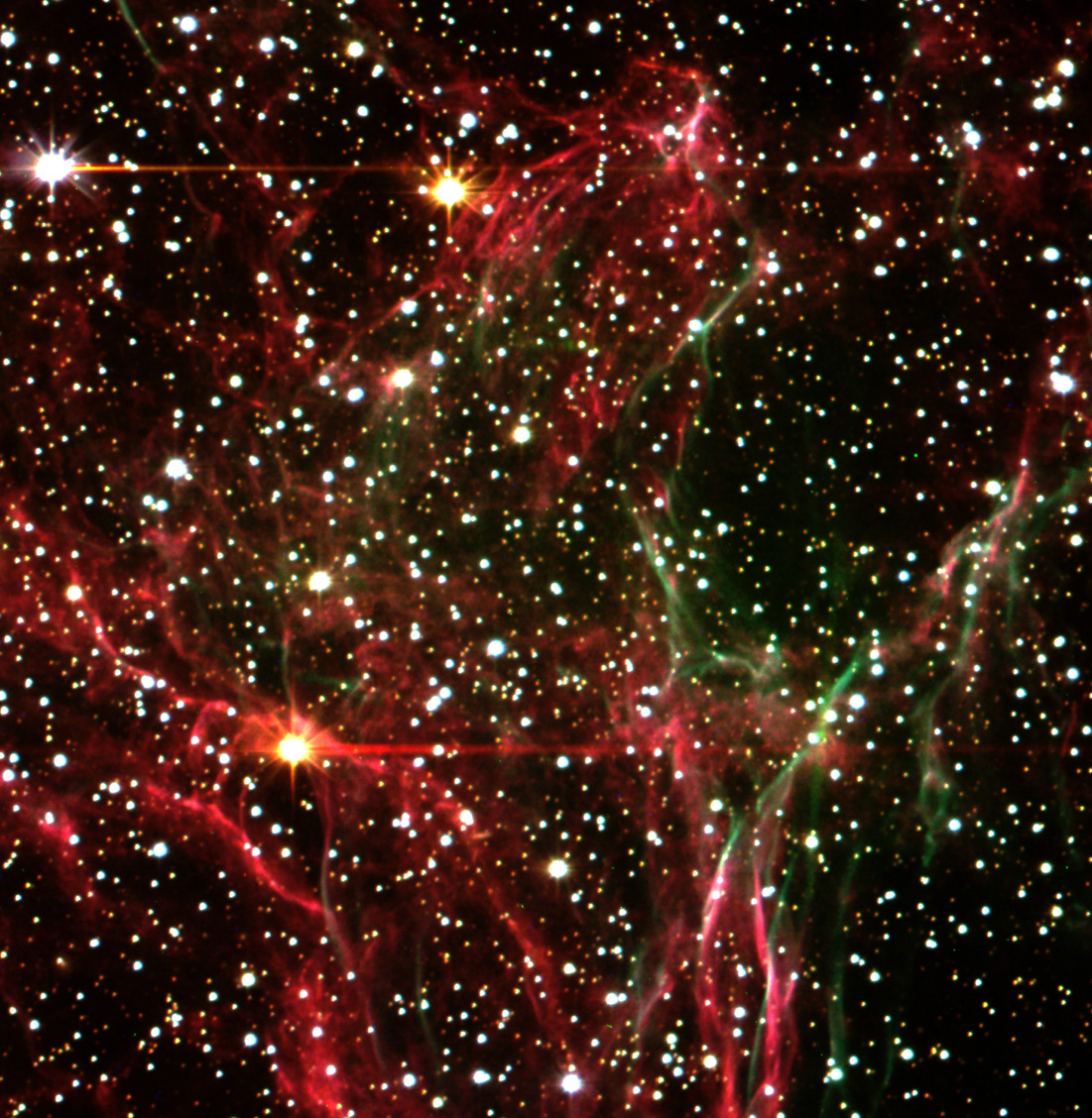 La nebulosa del Velo (o de los Encajes) se originó a partir de la explosión de una supernova de tipo II, hace unos 6.500 años. La fuerte explosión originó un frente de onda que se expande a gran velocidad, dando lugar a un gran calentamiento del medio que lo rodea. Esto genera la radiación visible gracias a la cual podemos verla.