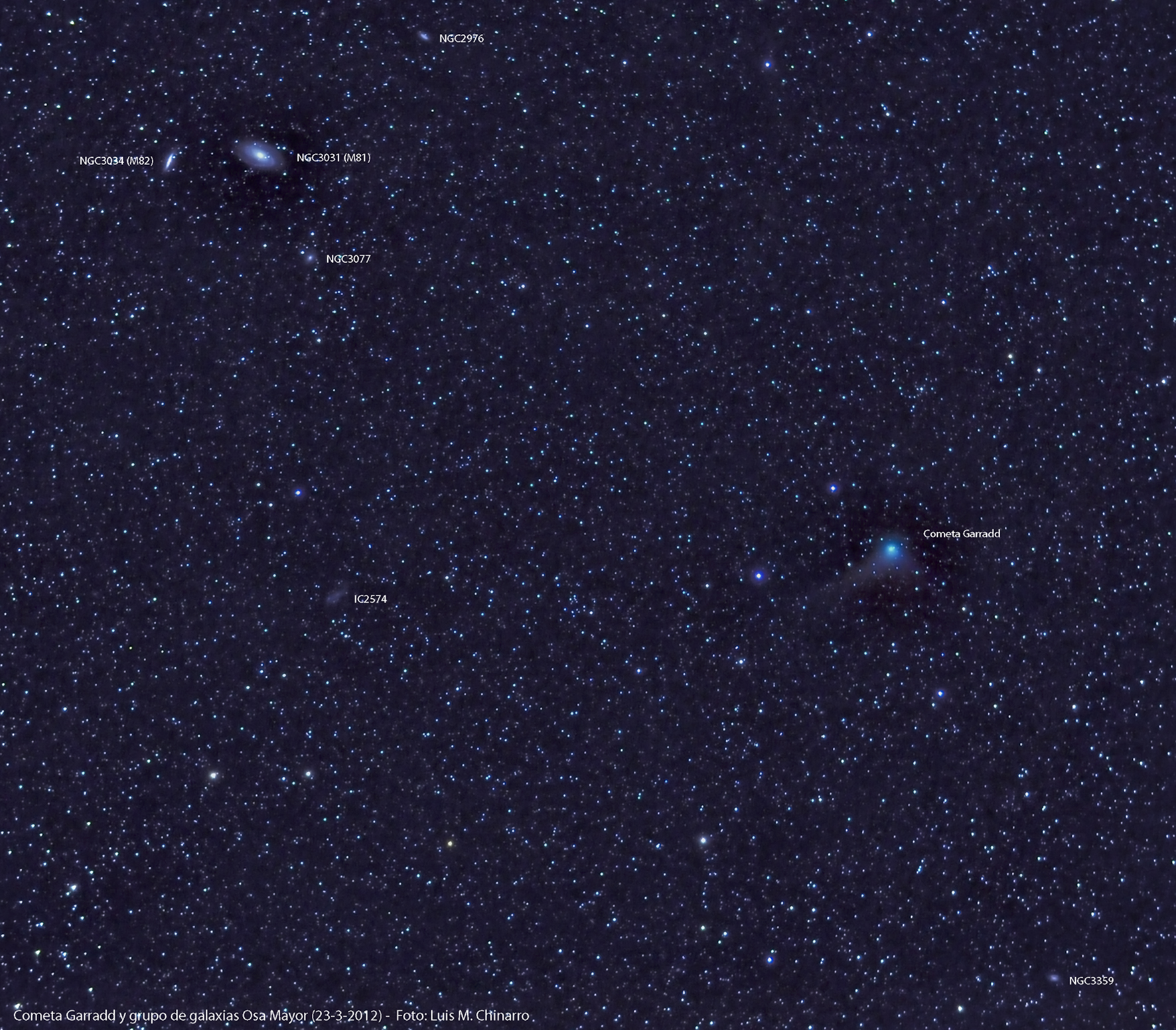Título de la imagen ? Cometa Garradd y grupo de galaxias de la Osa Mayor.