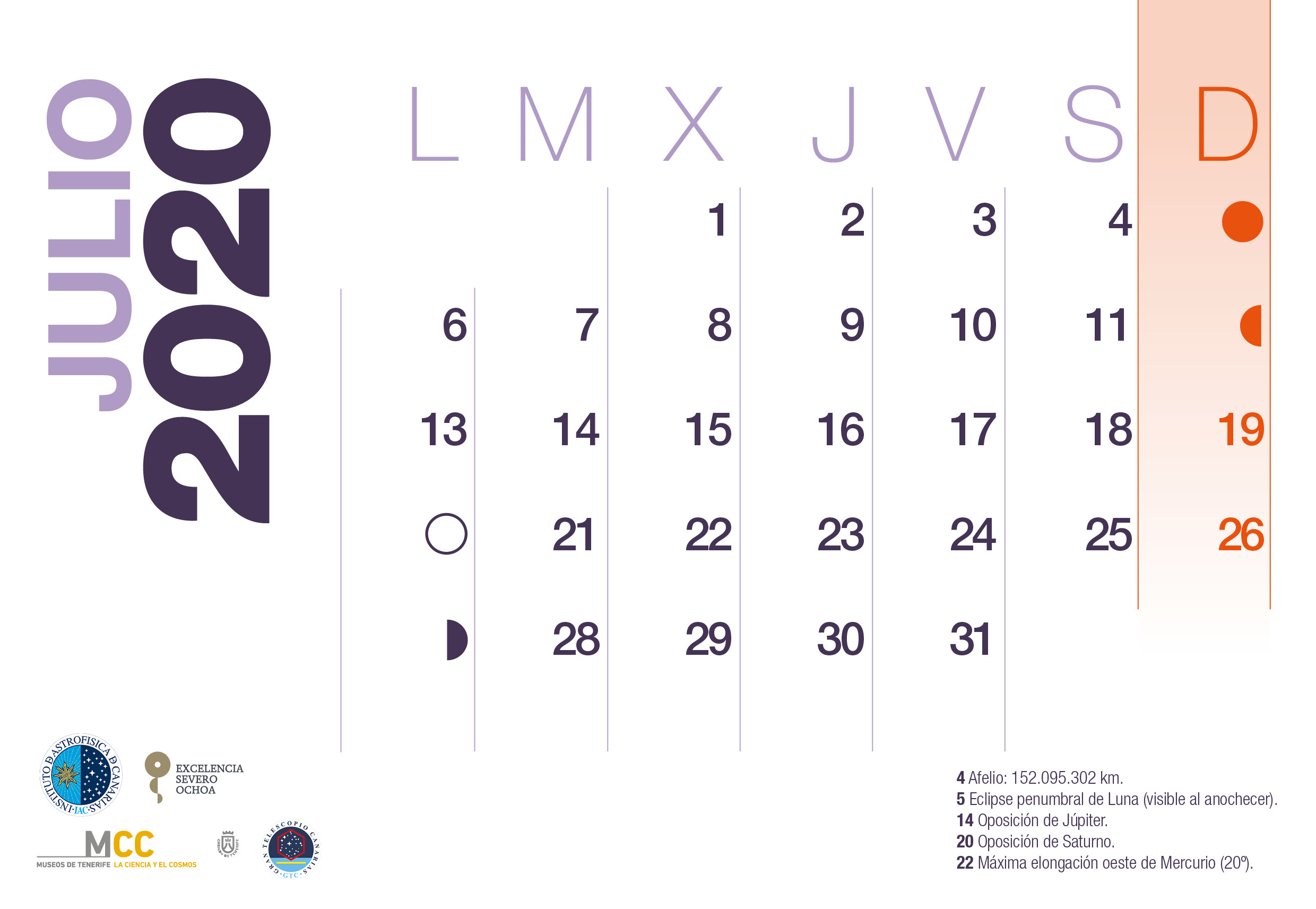 Calendario 2020 Julio