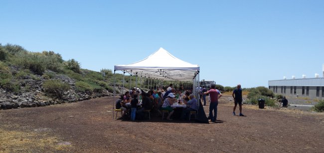 Vecinos de Garafía en la comida de convivencia durante la jornada de Puertas Abiertas en el Observatorio del Roque de los Muchachos. Crédito: Joaquín Arce (IAC).