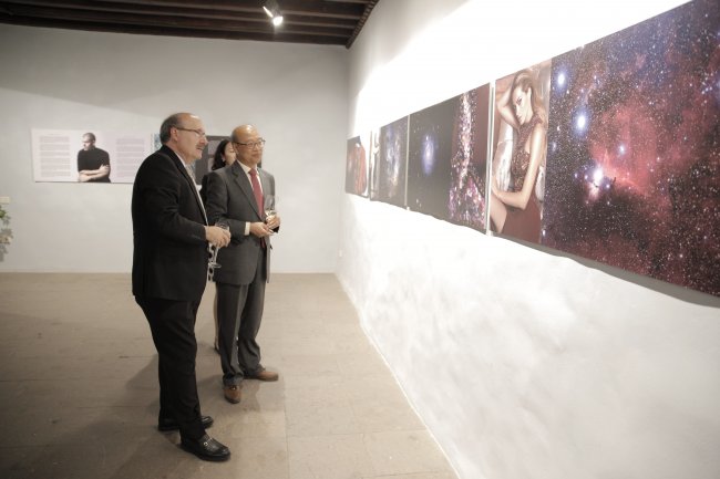 Rafael Rebolo, director del IAC, con En-ge Wang, vicepresidente de la CAS, durante la inauguración de las exposiciones con motivo del 10º aniversario de la Declaración Starlight de La Palma. Crédito: Elena Mora (IAC).