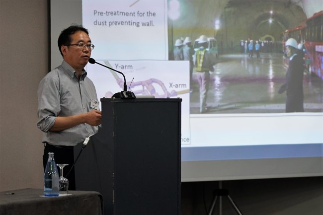 Masatake Ohashi durante su intervención en el simposio "Frontiers of Astroparticle Physics". Crédito: Iván Jiménez (IAC).