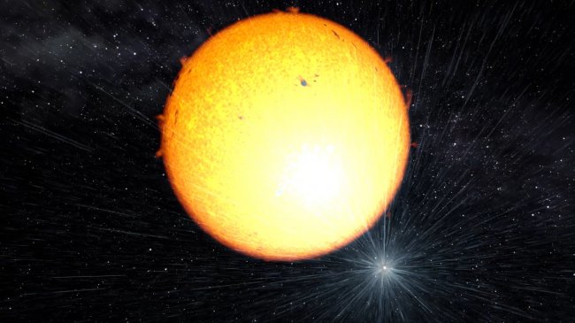 El púlsar masivo en el sistema binario PSR J2215+5135, illustrado en la Figura, calienta la cara interna de su estrella compañera. Crédito: Gabriel Pérez, SMM (IAC).