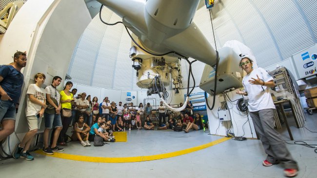 Visita guiada en el telescopio OGS (Estación Óptica Terrestre) en las Jornadas de Puertas Abiertas 2016. Crédito: Daniel Padrón.