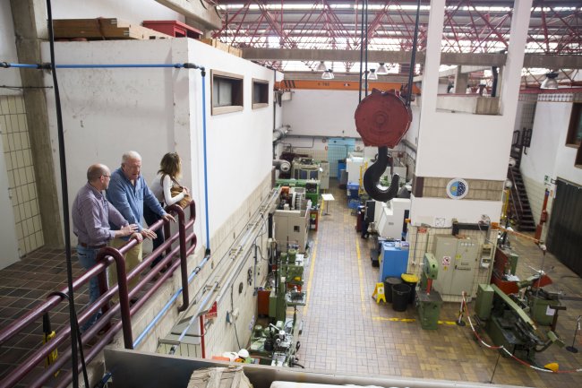 Juan Jesús Armas Marcelo en el Taller de Mecánica de la sede central del IAC, en La Laguna, junto a Enrique Joven, ingeniero y escritor del centro. Crédito: Elena Mora (IAC).