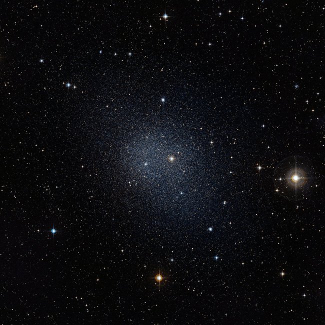 Fornax, una de las galaxias enanas de la vecindad de nuestra Vía Láctea. Esta imagen fue creada con datos del Digitized Sky Survey 2. Créditos: ESO/Digitized Sky Survey 2.