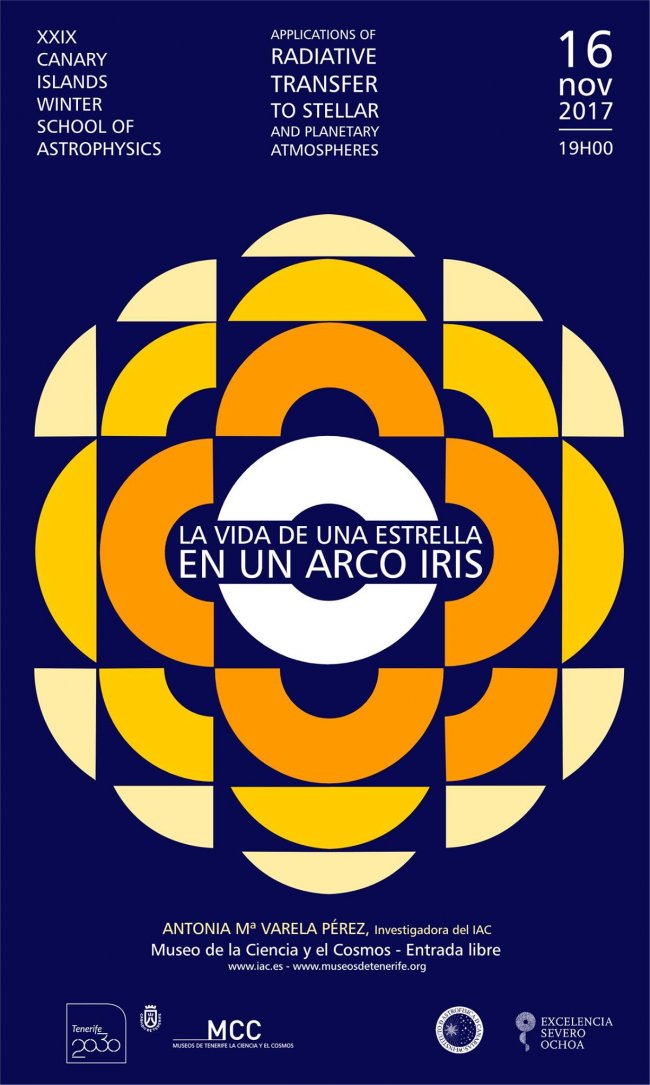 Poster de la conferencia “La vida de una estrella en un arco iris”. Crédito: Miriam Cruz (MCC).