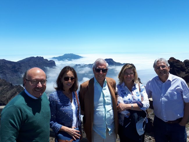 De izquierda a derecha: Rafael Rebolo, Isabel Preysler, Mario Vargas Llosa, Susana Iglesias-Groth y Juan Carlos Pérez Arencibia. Crédito: Camen del Puerto (IAC).