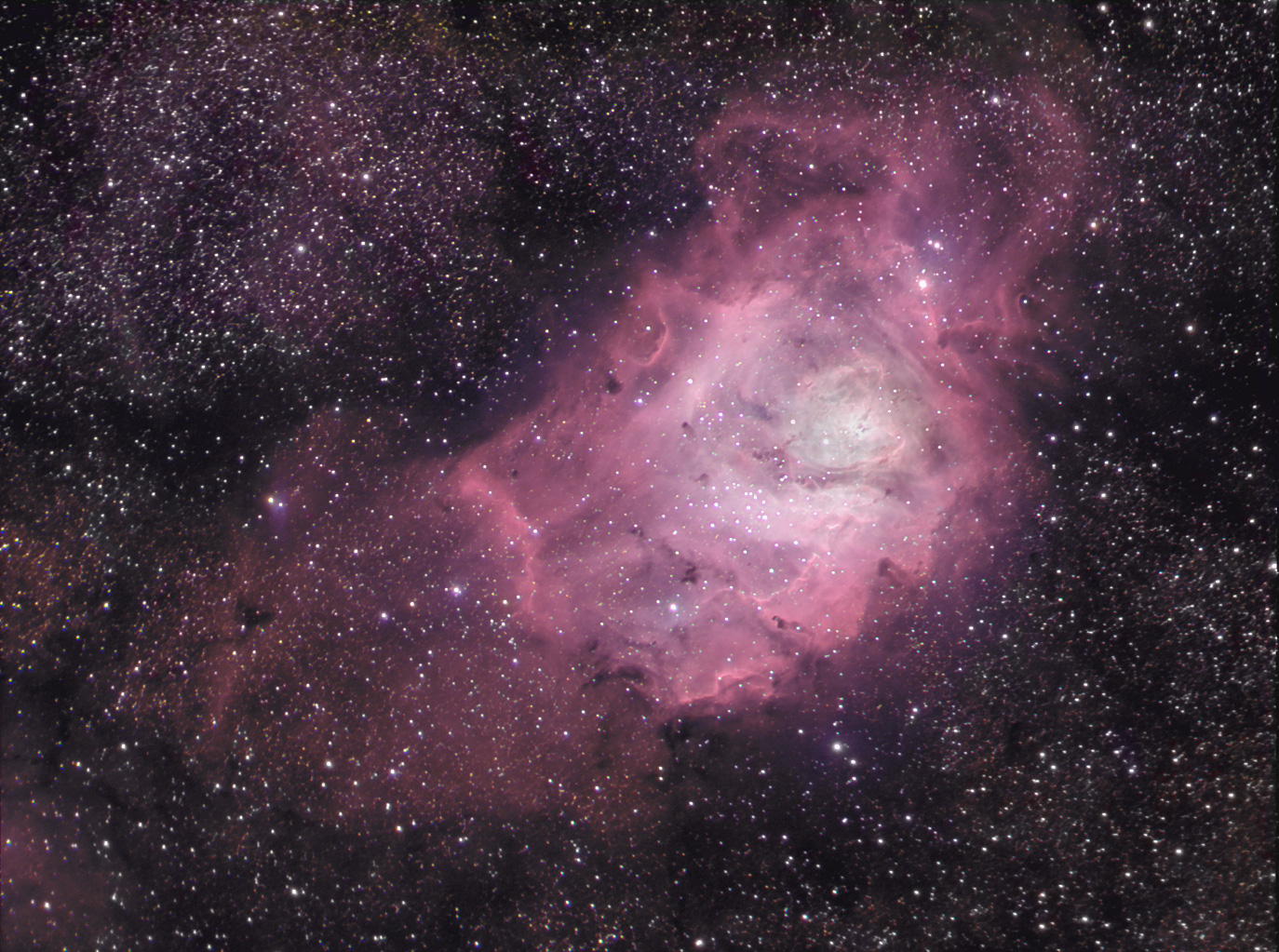 La nebulosa de la Laguna es una nebulosa de emisión, gas que brilla con luz propia. En estas regiones gaseosas es donde tiene lugar la formación estelar. La nebulosa de la Laguna está en la constelación de Sagitario, a unos 5.000 años-luz de la Tierra.