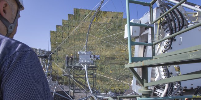 Nicolás Melini en el telescopio MAGIC. Crédito: Antonio González/IAC.