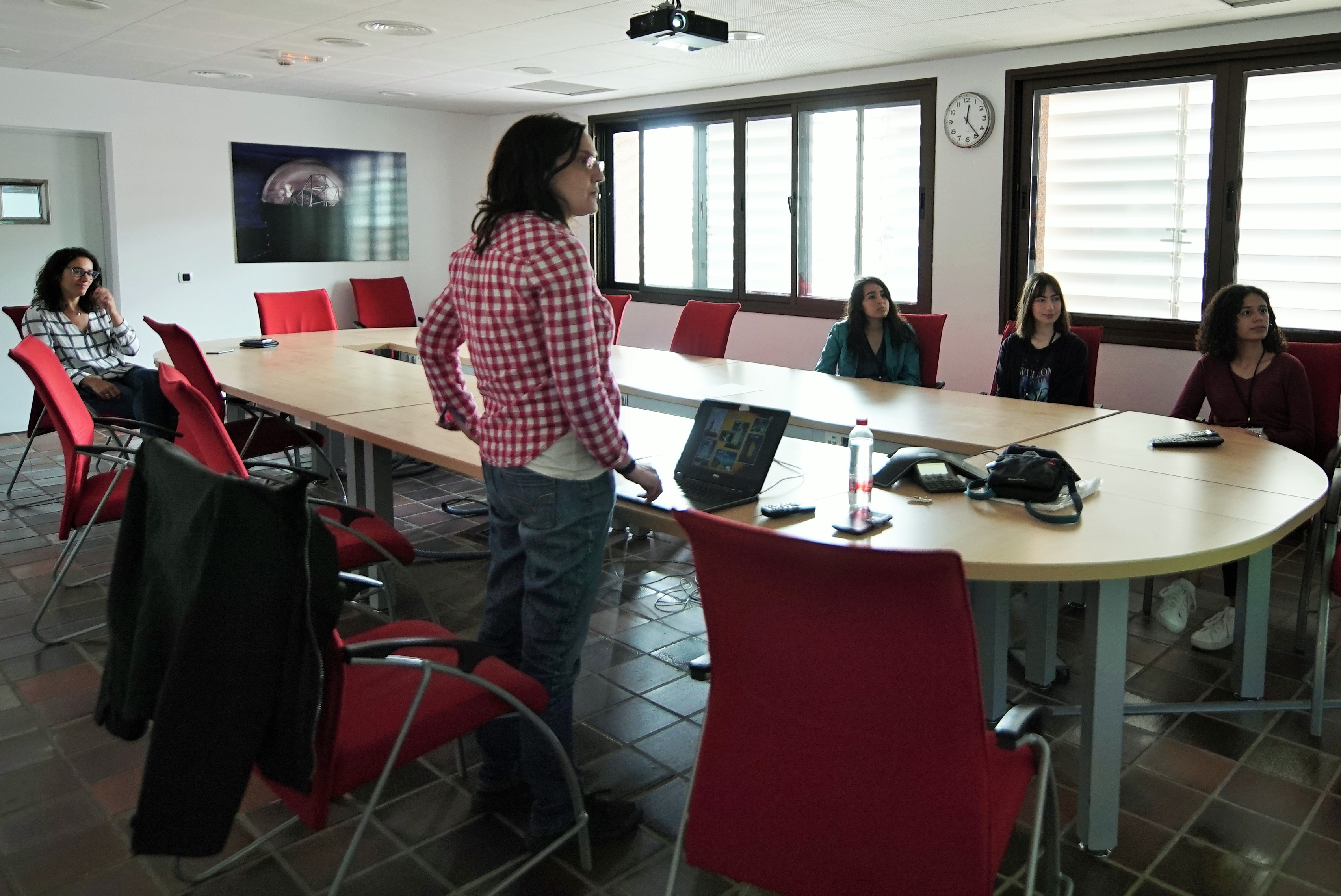 Olga Zamora habló sobre los Observatorios de Canarias y el trabajo que en ellos se realiza a las estudiantes del programa Canarias Masterclass. Crédito: Tamara Muñiz Pérez (IAC).