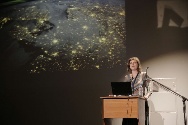 Sibylle Schroer del Instituto Leibniz Institute of Freshwater Ecology and Inland Fisheries, ponente del segundo bloque de la jornada. Crédito. Elena Mora (IAC).