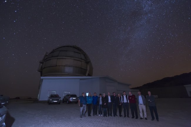 Asistentes al acto de primera luz de MEGARA ante el GTC. Crédito: Antonio González/IAC.