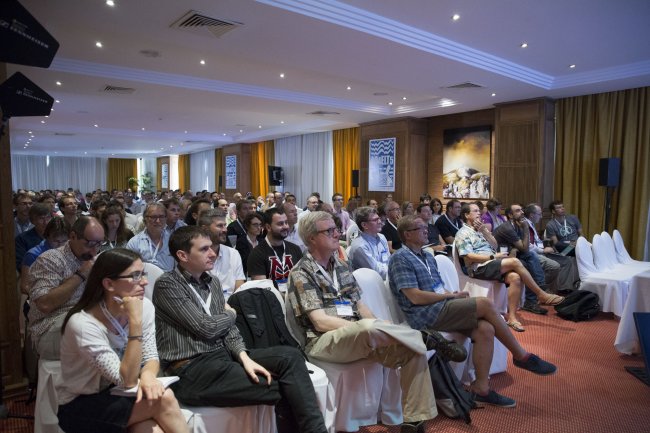 Participantes en el congreso sobre “Óptica Adaptativa para Telescopios Extremadamente Grandes” (AO4ELT5). Crédito: Elena Mora (IAC).