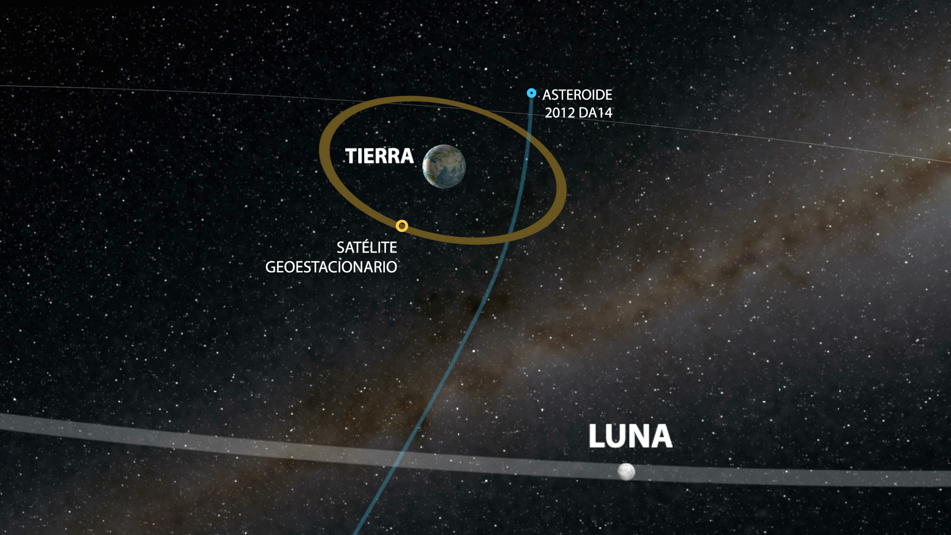 Orbit of asteroid 2012 DA14 in comparison with a geostationary satellite orbit.