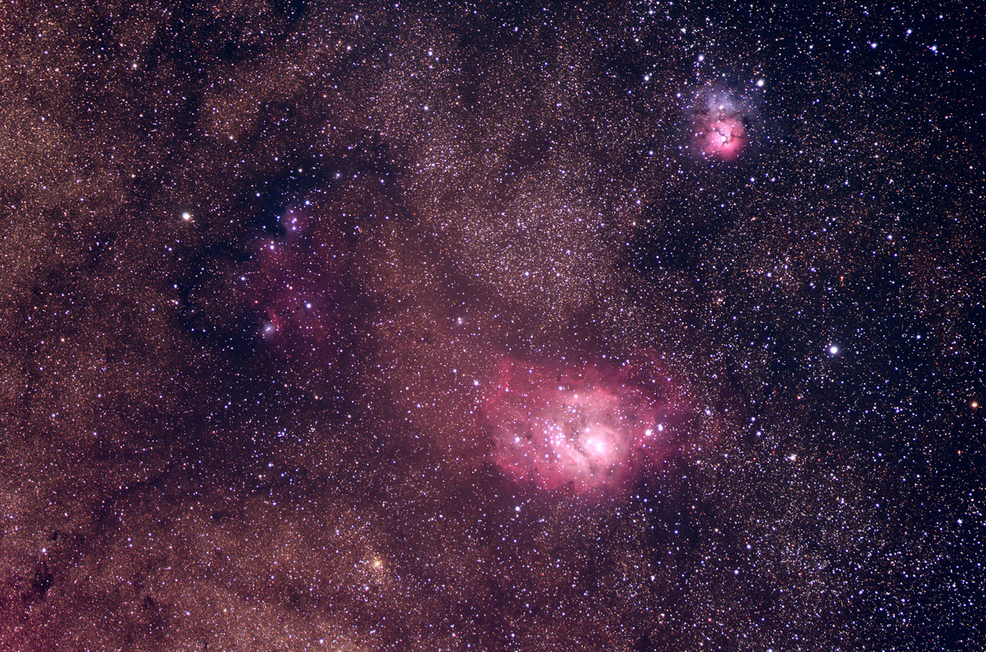 M8, M20 y NGC6559. Nebulosas La Laguna y Trífida.