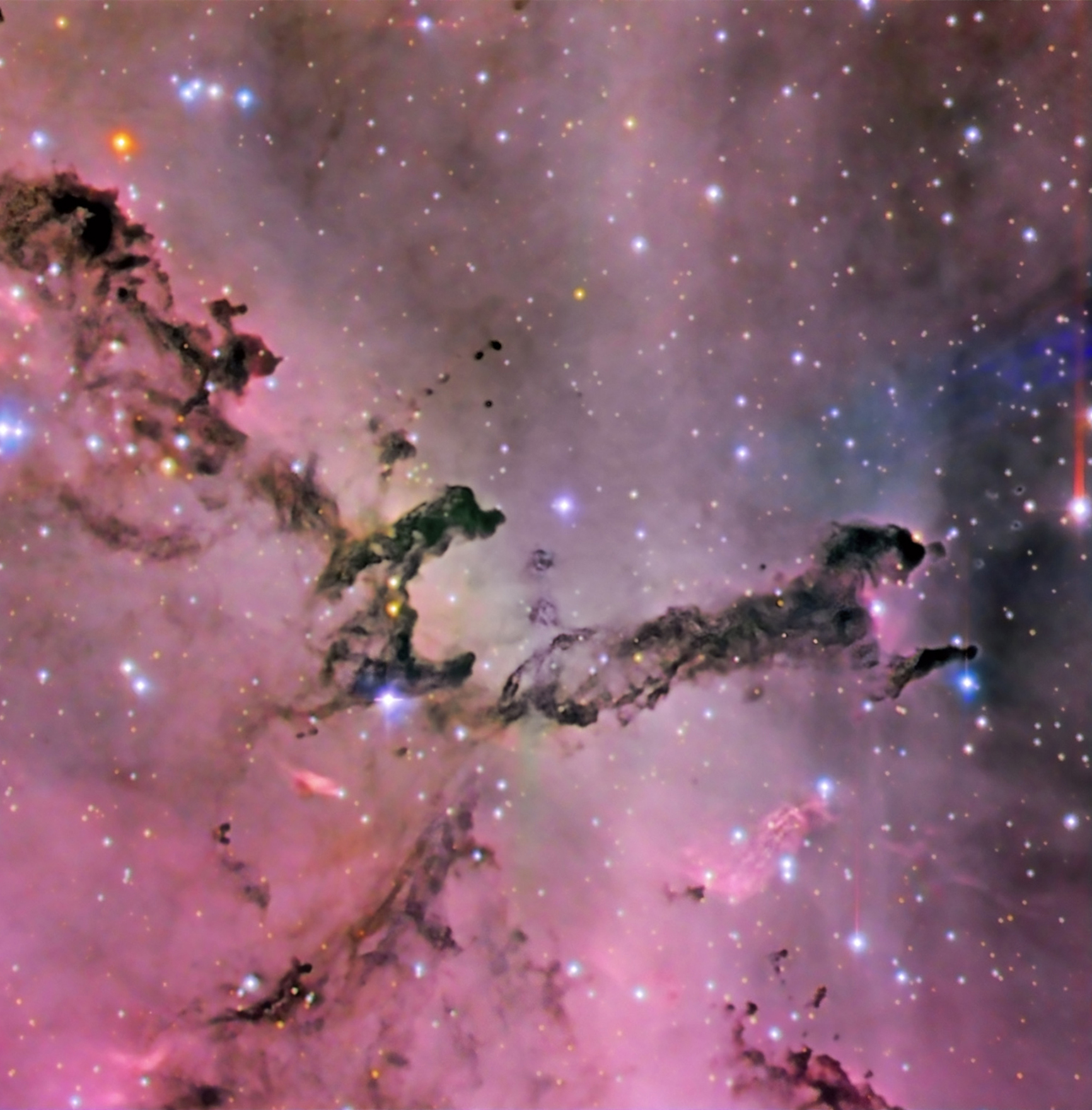 Esta imagen, captada con el telescopio IAC80, del Observatorio del Teide, se centra en una pequeña zona de una de las regiones más impresionantes de la inmensa estructura de polvo y gas, y quizás pueda recordar a un guepardo saltando.