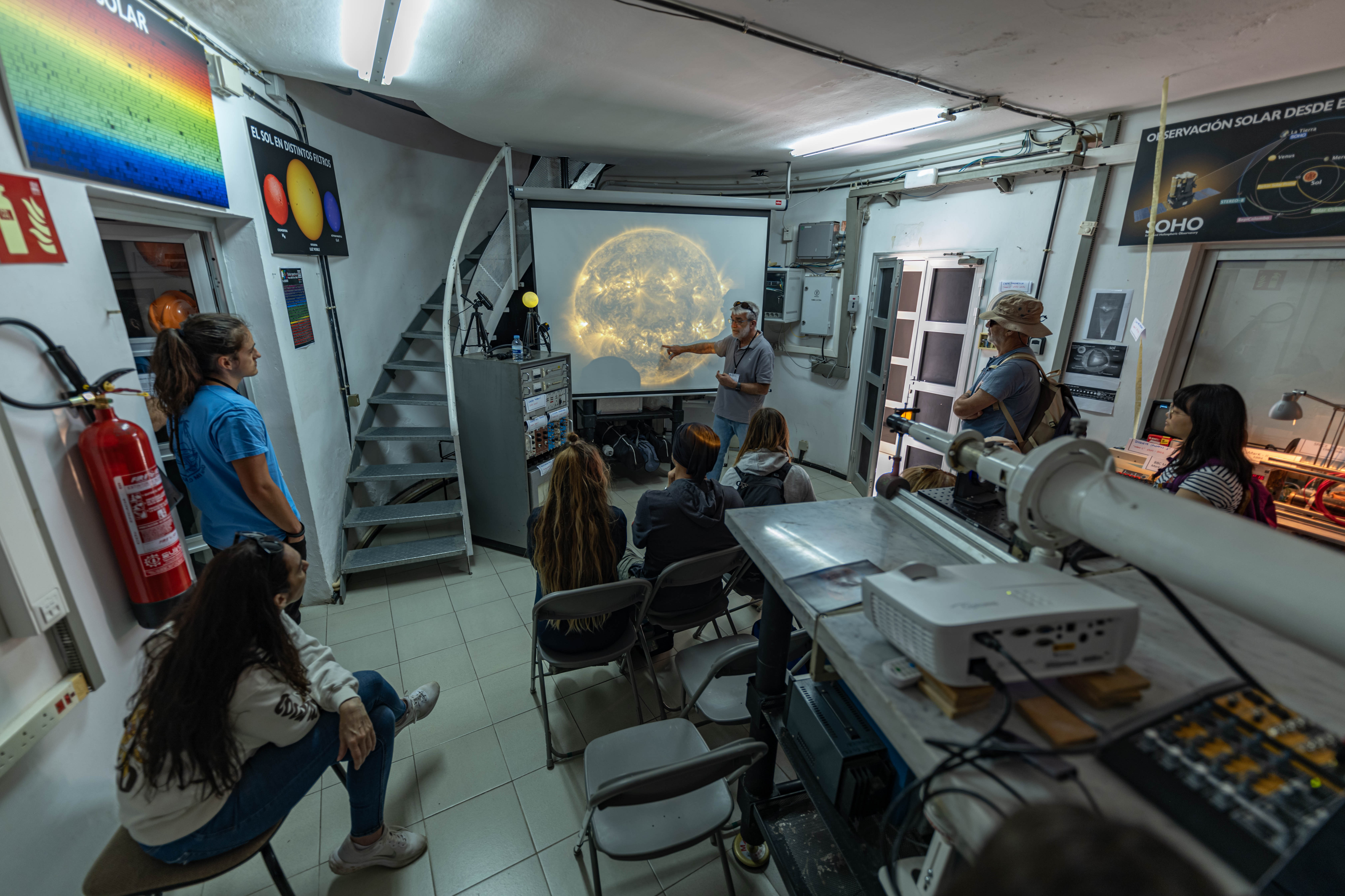 Open Days 2023 - Pirámide Download Pere Pallé talks about the Sun inside the Pyramid, during the Open Days at the Teide Observatory 2023. Open Days 2023 - Pirámide Created at 06/23/2023 Authors Daniel López Prieto Obtained at Teide Observatory In the media Installation Solar Laboratory Telescope Category Events and activities Outreach
