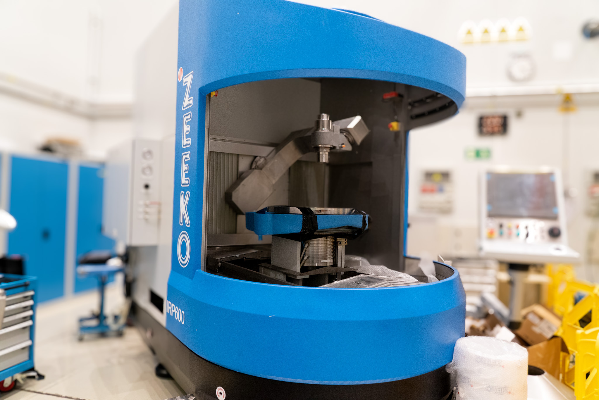 La pulidora Zeeko IRP600 destaca por su capacidad para pulir elementos ópticos con un diámetro de hasta 600 mm. Esta máquina de control numérico cuenta con siete ejes, que incluyen los ejes de traslación X, Y, Z, la rotación del sustrato, dos inclinaciones de la herramienta y el giro. Gracias a esta versatilidad en la manipulación, la Zeeko IRP600 ofrece un amplio rango de posibilidades para el pulido preciso de elementos ópticos de diferentes formas y tamaños, lo que la convierte en una herramienta esencial para la fabricación de componentes ópticos de alta calidad.