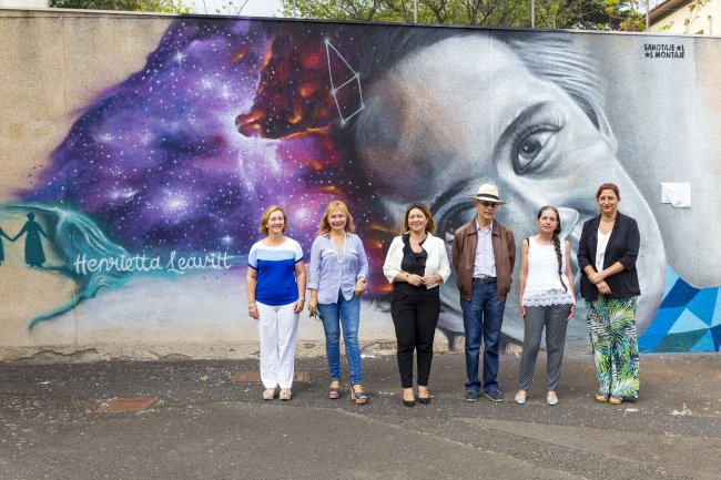 From left to right: María Candelaria González (Vice-Dean of the section of Mathematics of the Faculty of Science), Silvana Radescu (Vice-Dean of the section of Physics of the Faculty of Science), Norena Martin (Vice-Rector of Infrastructure and Services of the University), Nestor Torres (Dean of the Faculty of Science), María Jesús Arévalo (Coordinator of higher education at the IAC and director of the Department of Astrophysics at the ULL) and Carmen del Puerto (Head of the Unit of Communication and Scientific Culture of the IAC).