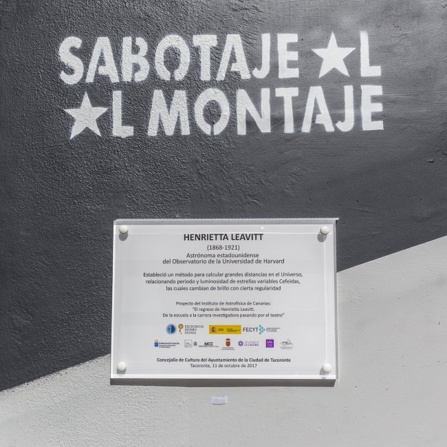 Explanatory plaque accompanying the mural in honor of Henrietta Leavitt in Tacoronte. Credit: Elena Mora (IAC).
