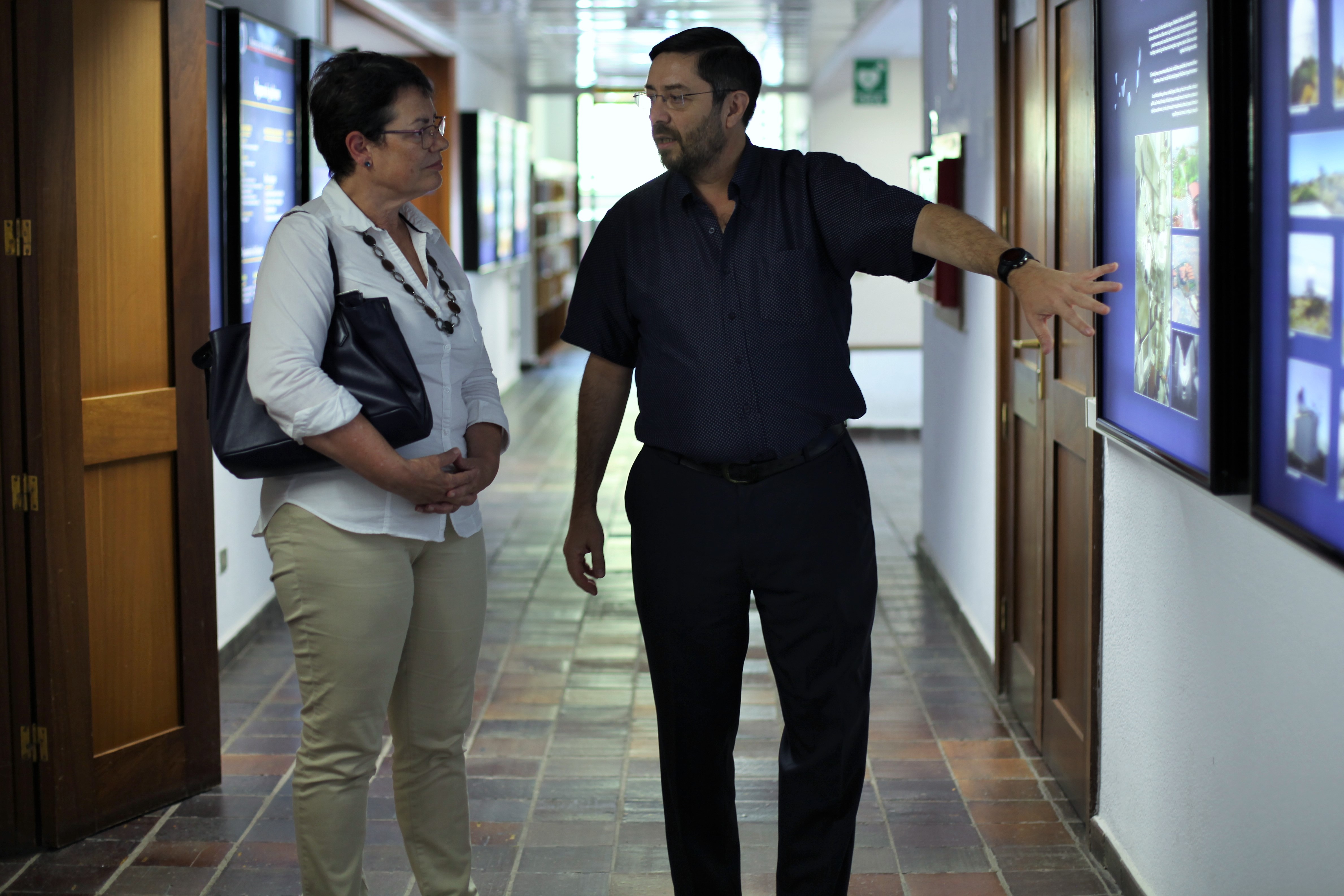 Ana Rosa Mena, mayoress of Tegueste, and Javier Licandro, in the IAC headquarters in La Laguna. Credit: Alejandra Rueda (IAC).
