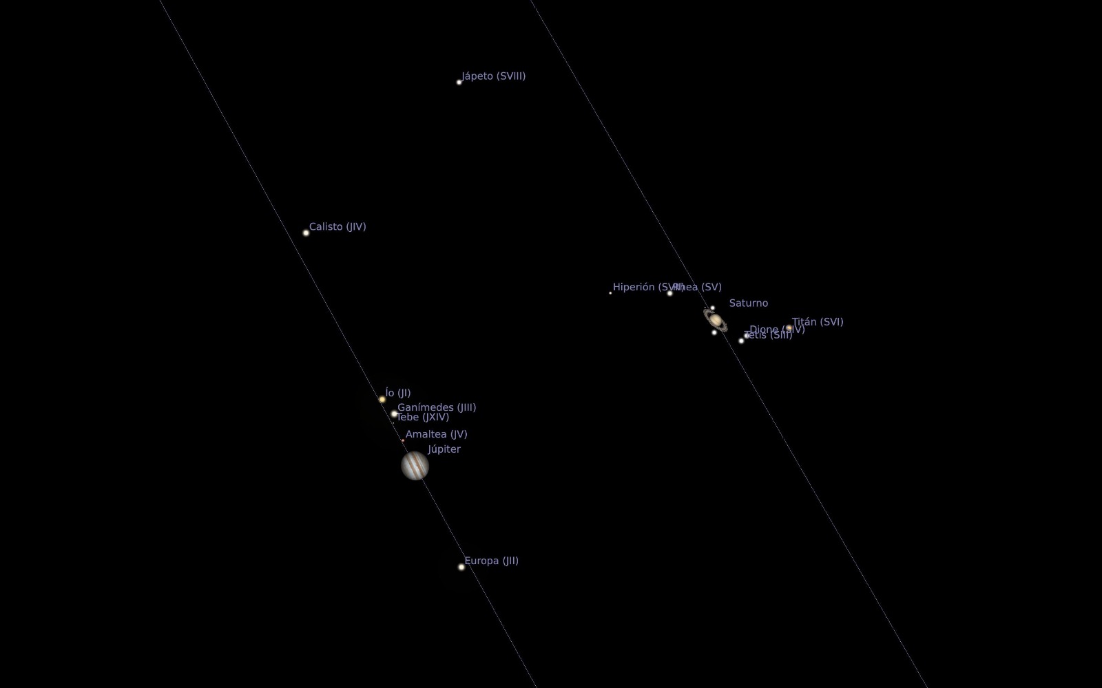 A través de un pequeño telescopio, podremos observar ambos planetas al mismo tiempo. Júpiter, con sus cuatro lunas Galileanas, y Saturno, con sus anillos. Una imagen que no se repetirá en 60 años.