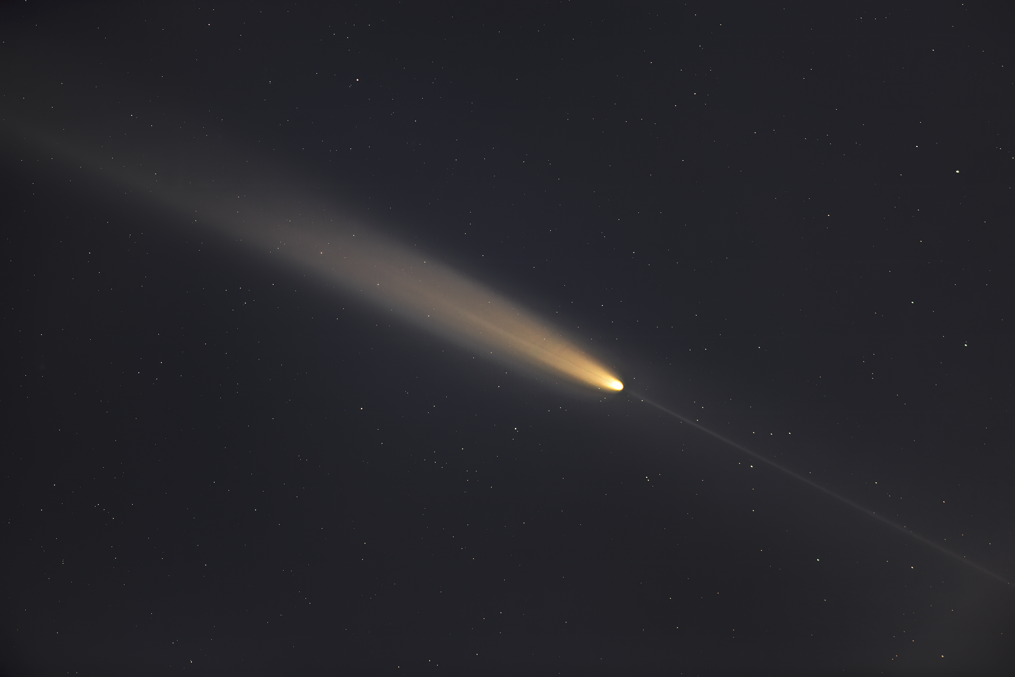 Observamos en detalle por última vez el cometa C/2023 A3 el 22 de octubre. Con una tenue anticola y una cola rizada bien definida, abarca aún varios grados de longitud.