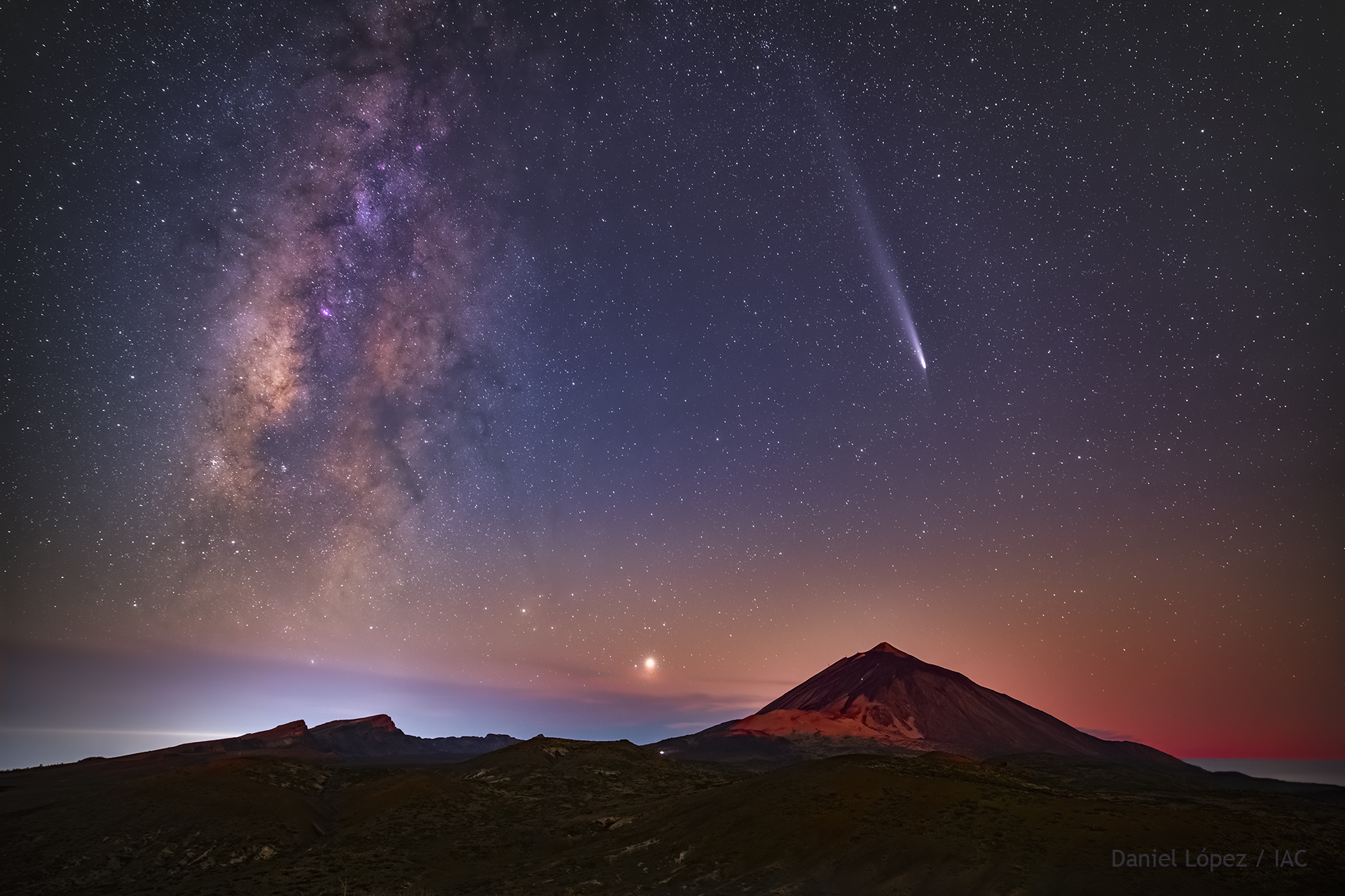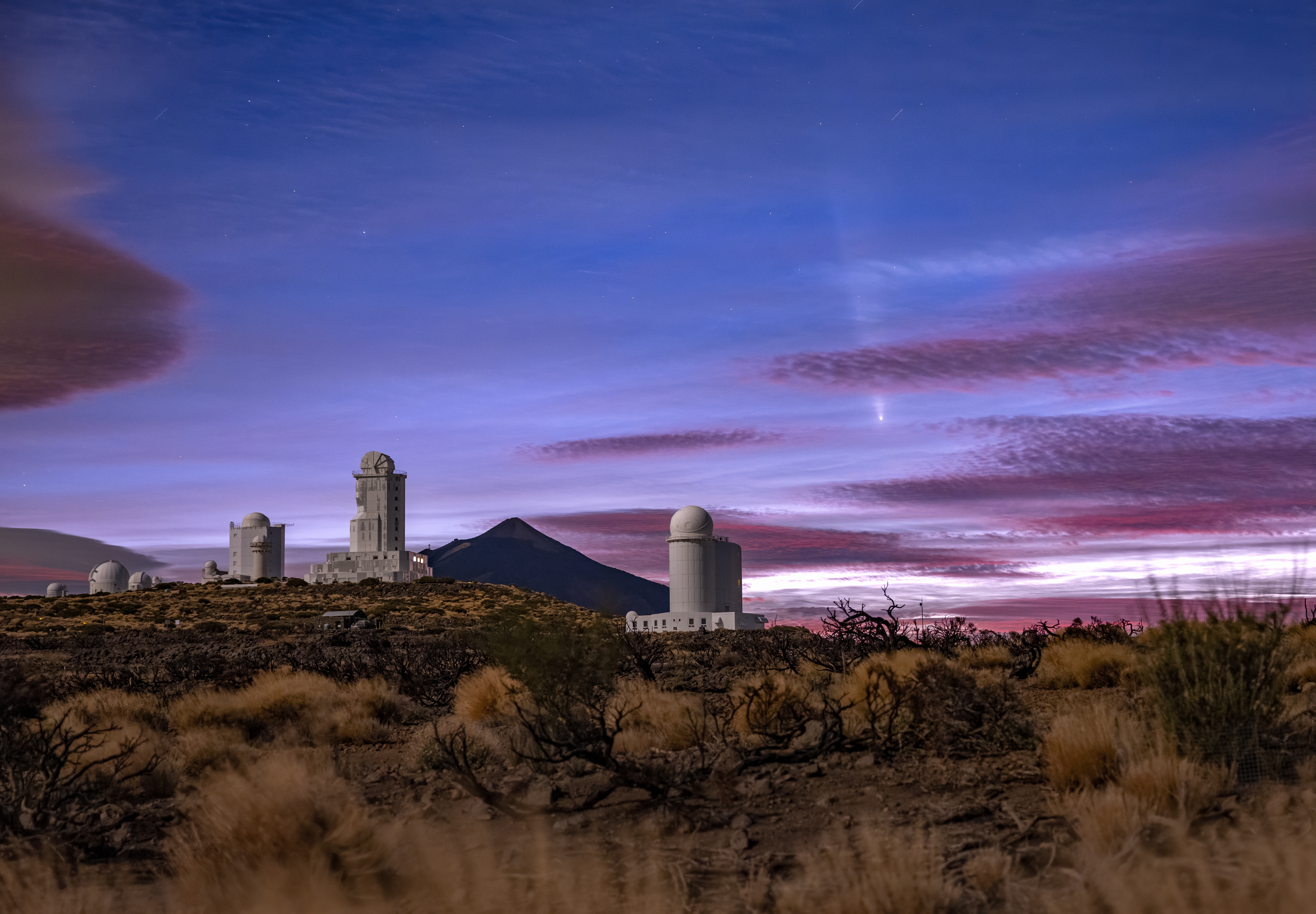 El 15 de octubre, a pesar de una Luna iluminada al 96 %, la suma de condiciones, en general, enumeradas en la segunda entrada en el blog sobre este cometa, hacían esperar buenas condiciones para su observación. Con este objetivo convocamos a un grupo de activos profesores del proyecto CosmoLab del IAC en el Observatorio del Teide, con el fin de poder disfrutar del evento. Aunque las nubes hicieron acto de presencia, no impidieron observar y disfrutar del efímero visitante.