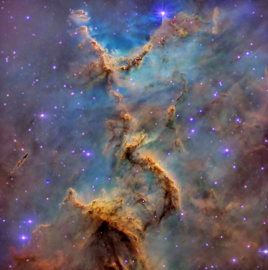 La imagen superior está centrada en el cúmulo galáctico Melotte 15, situado en Casiopea. Este grupo de estrellas jóvenes forma parte del inmenso complejo nebular llamado la Nebulosa del Corazón (IC 1805). La imagen de Melotte 15 tomada con el telescopio IAC80 tiene un tamaño de 15 años luz, mientras que IC 1805,abarca 300 años luz.