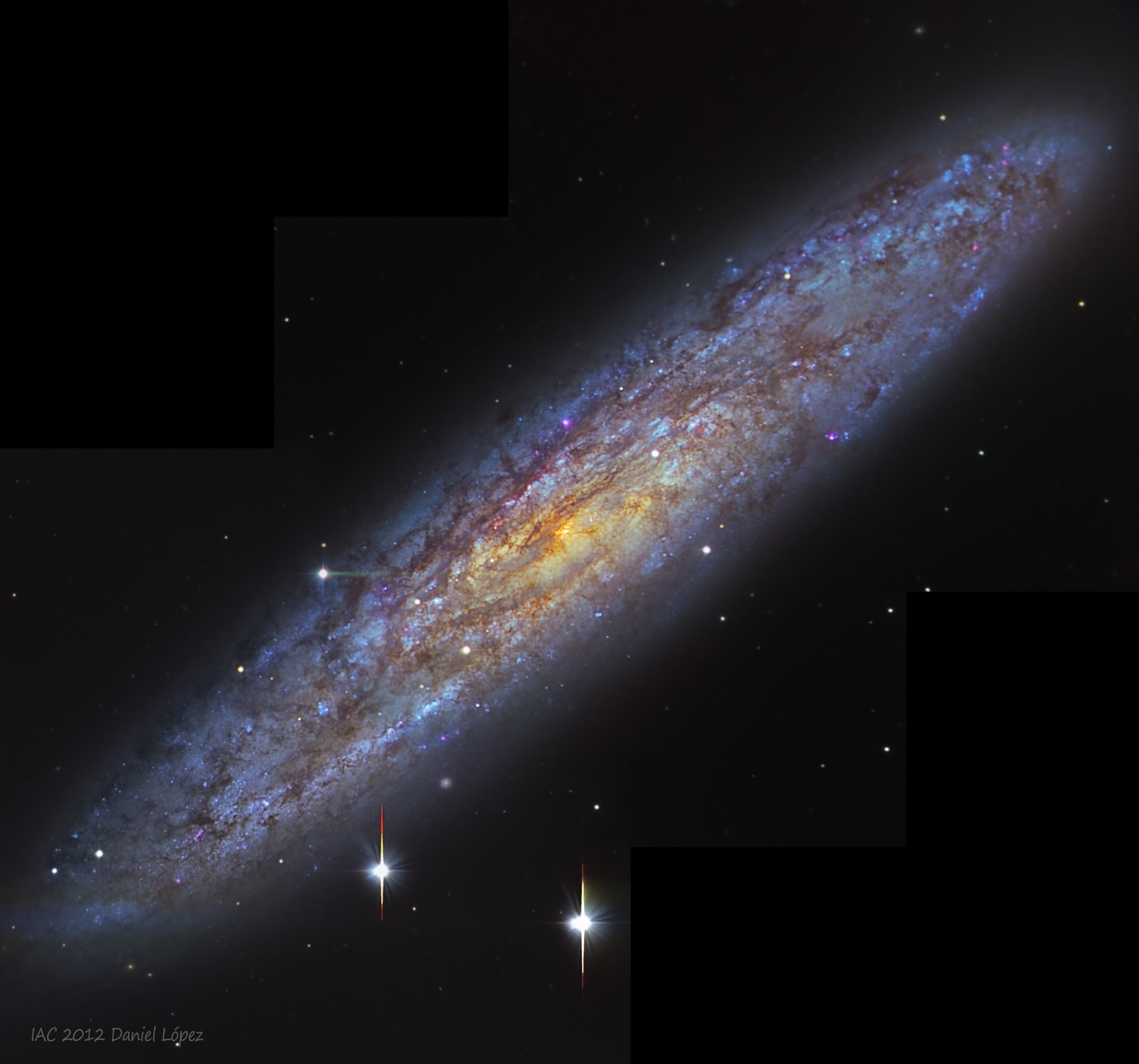 El tamaño aparente de esta galaxia es de 27,5 × 6,8 minutos de arco, por lo que fue necesario realizar un mosaico de tres campos con el IAC80, que cuenta con un detector CCD que cubre unos 11x11 minutos de arco.