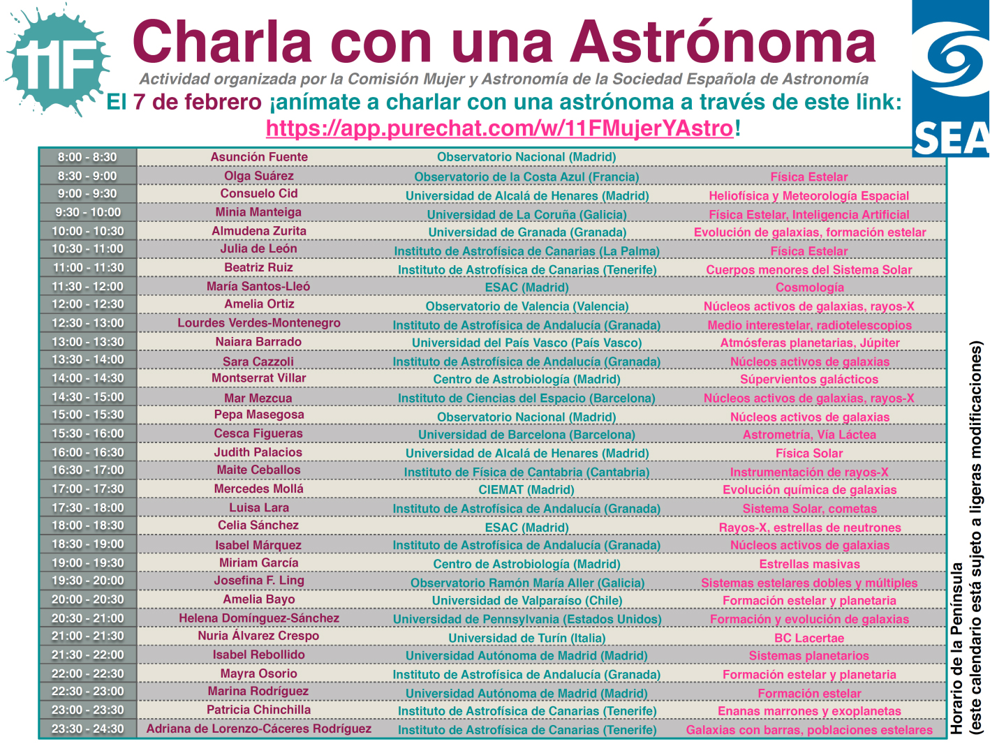 Cartel de la actividad "Charla con una Astrónoma" organizado por la Sociedad Española de Astronomía. Credit: SEA.