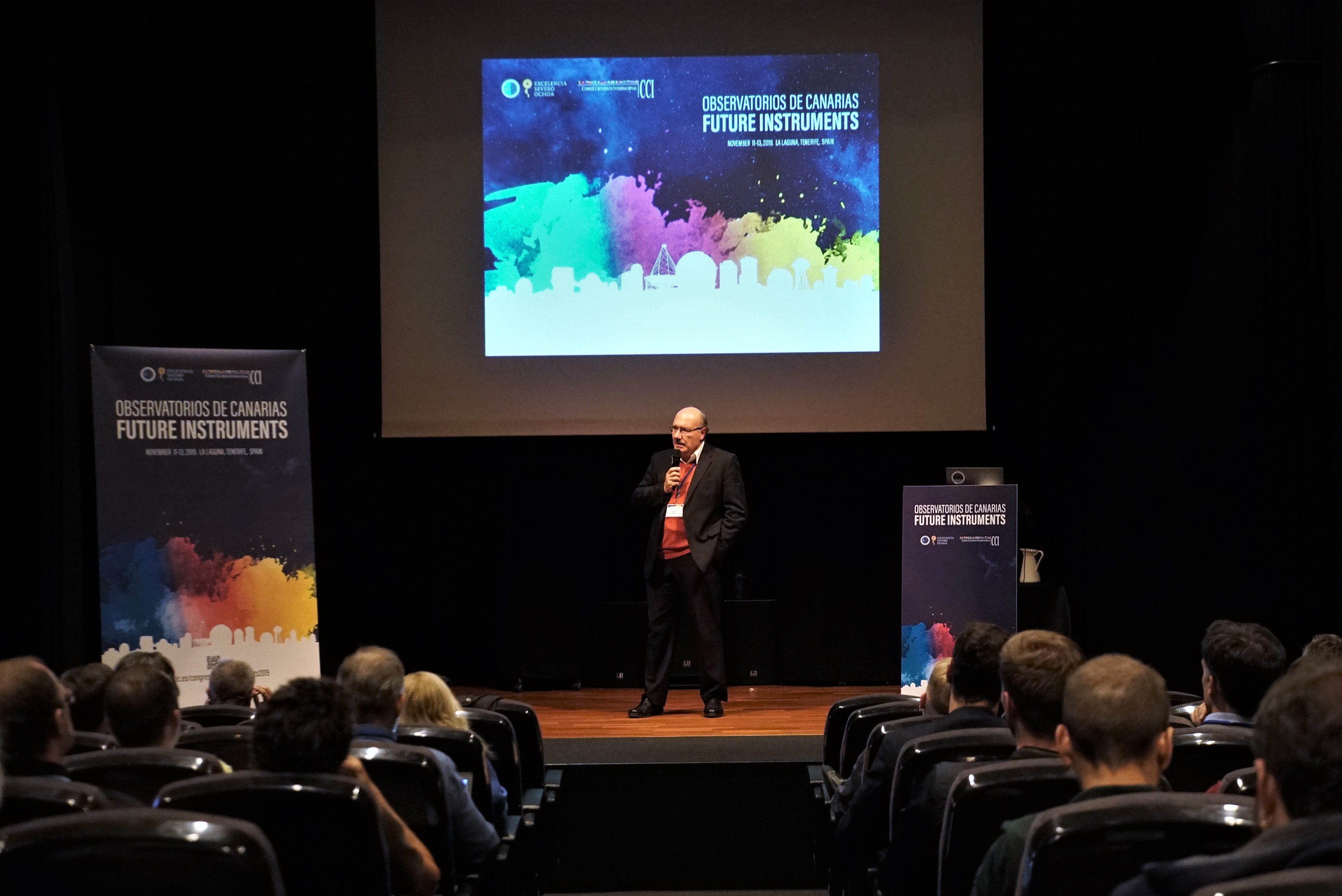 Rafael Rebolo, director del IAC, en el congreso "Futuros Instrumentos para Telescopios en los Observatorios de Canarias" celebrado en el Museo de la Ciencia y el Cosmos de Tenerife