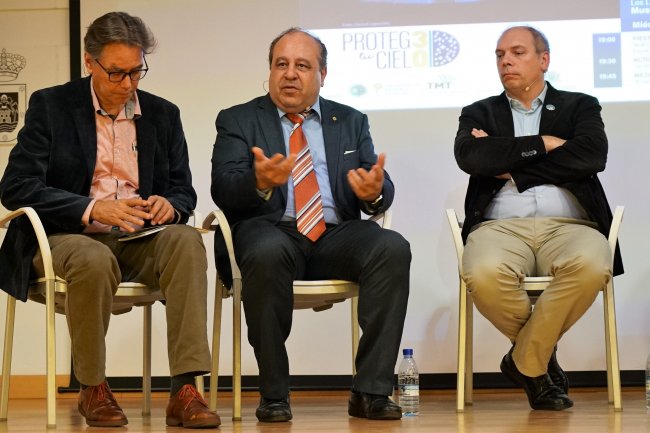 Algunos de los asistentes a la mesa redonda “El valor del cielo de La Palma”. De izquierda a derecha: Marc Balcells, Javier Díaz Castro y Christophe Dumas. Crédito: Iván Jiménez Montalvo (IAC).